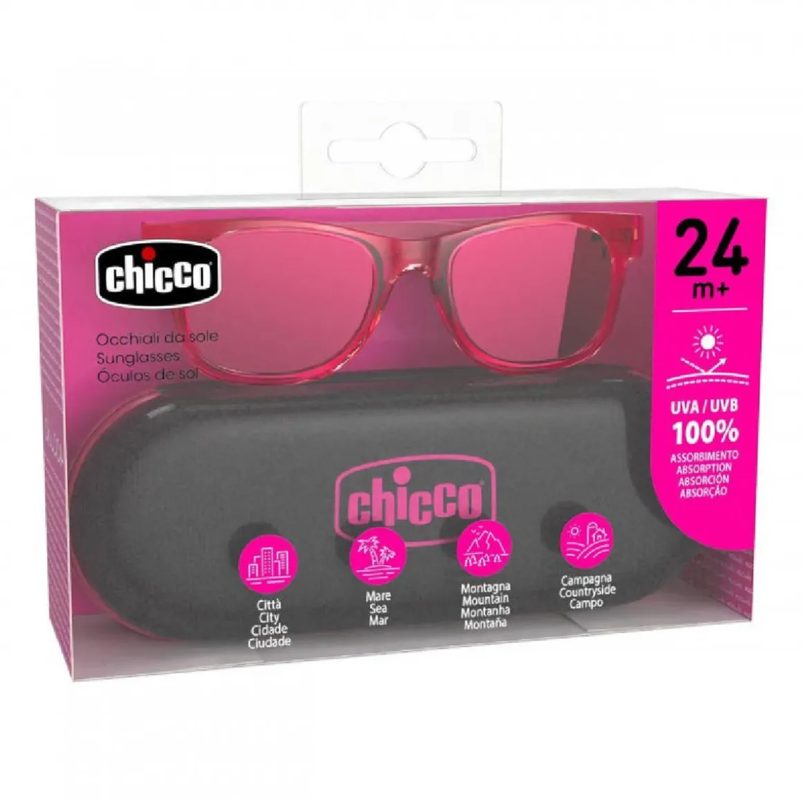 Las Gafas de Sol 24M – Transparente Rosa de Chicco son el accesorio ideal para cuidar los ojos de los más pequeños con la garantía y calidad que caracteriza a Chicco.
