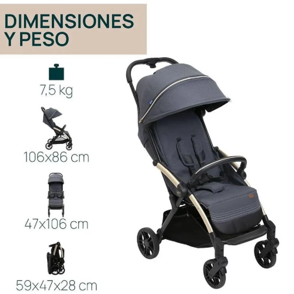 - Dimensiones plegada: 28 x 47 x 59 cm