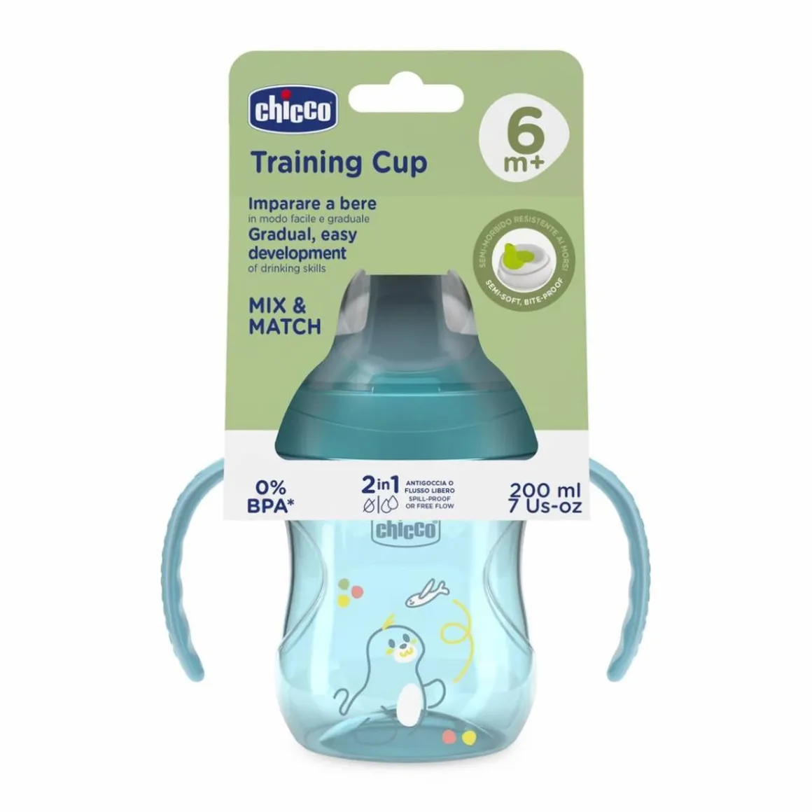 El vaso de aprendizaje Azul 6M+ de Chicco combina seguridad, comodidad y estilo, ayudando al bebé a desarrollar su independencia de manera natural.