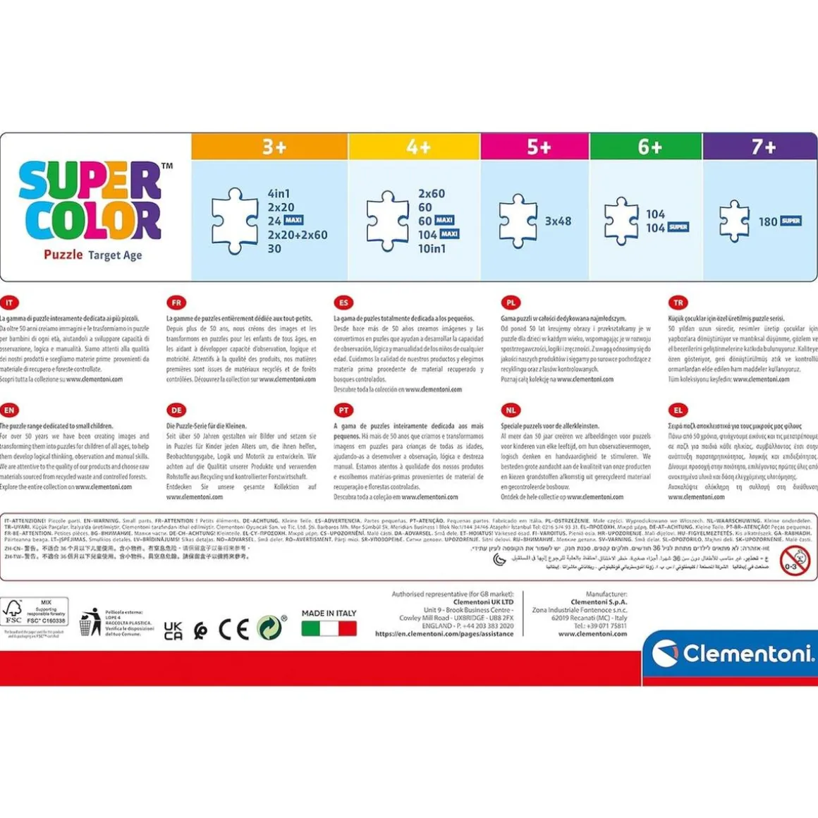 ¡Y al mismo tiempo estarán ayudando al medio ambiente! Este puzzle está hecho de materiales reciclados y no contiene componentes contaminantes, así que, a la vez que se divierten, estarán contribuyendo a cuidar nuestro planeta. Además, este puzzle ha sido fabricado en Italia, garantizando su calidad.