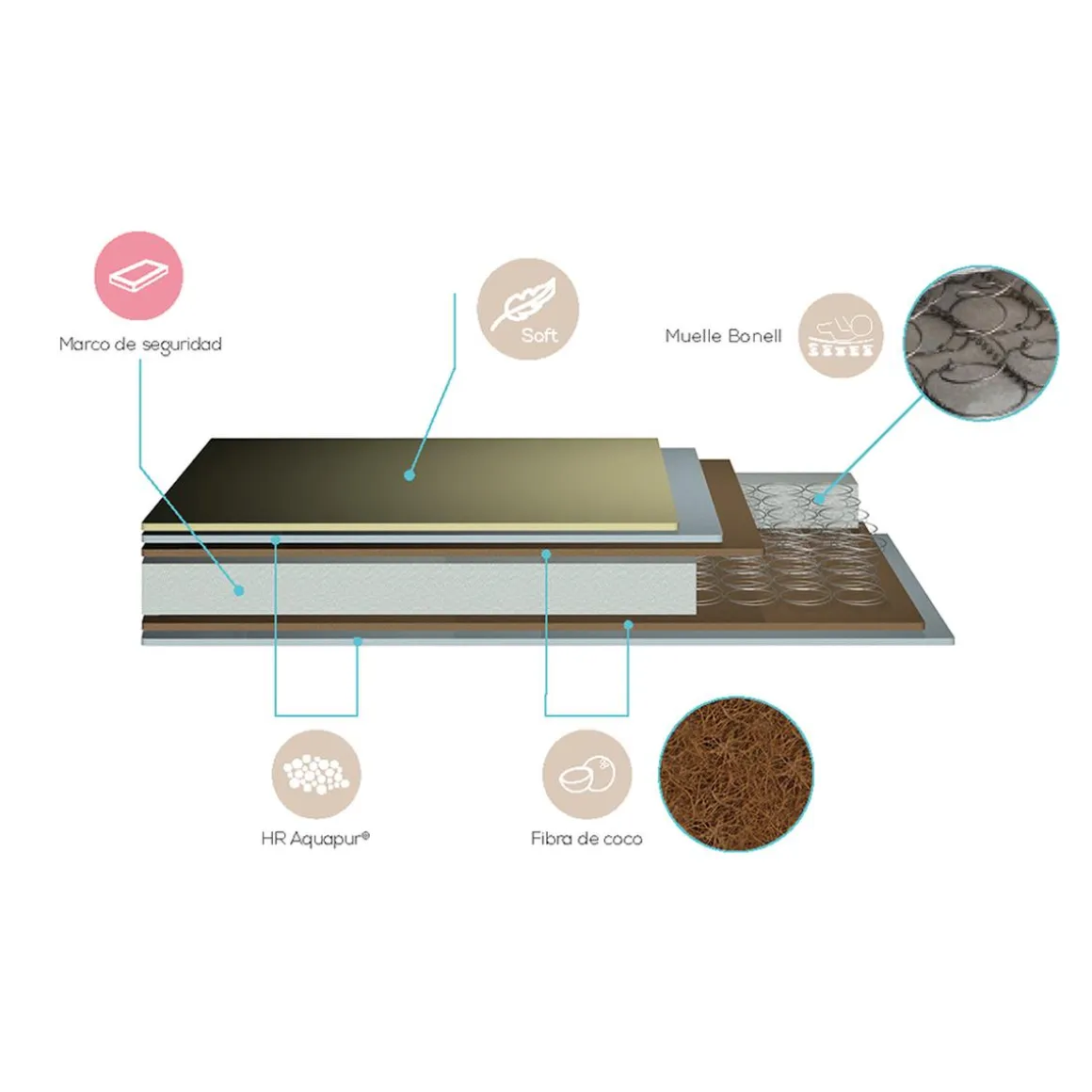 Colchón de Muelles y Fibra de Coco para cuna 60X120cm
