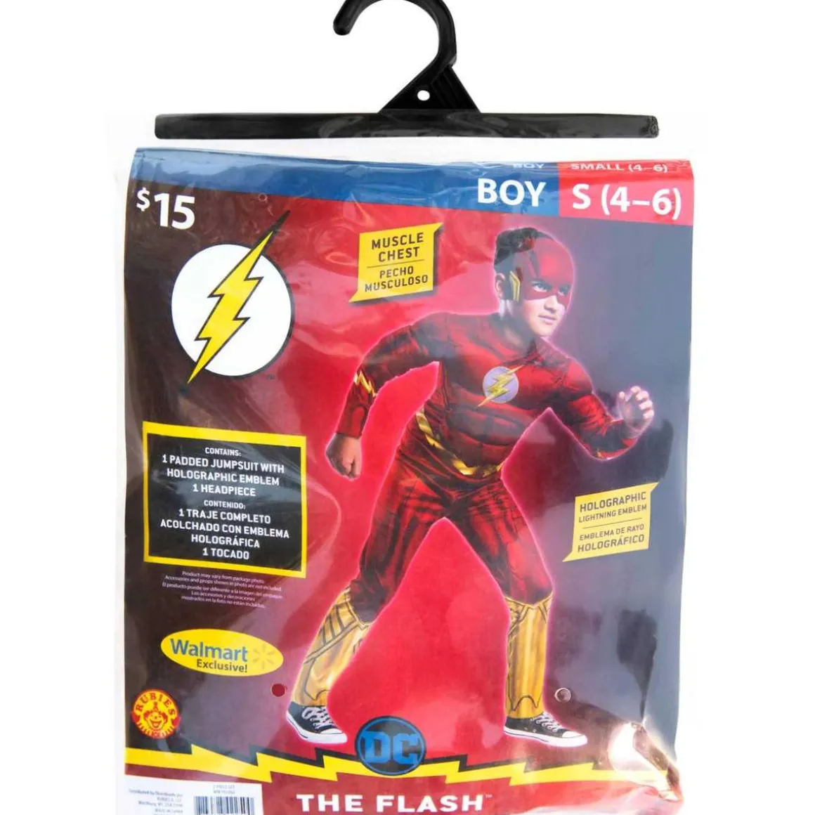 Para que los niños puedan disfrutar al máximo de su experiencia como Flash, el jumpsuit cuenta con cierre de velcro en la parte trasera, facilitando la colocación y ajuste del disfraz. Además, viene debidamente empaquetado en una bolsa de percha, ideal para guardarlo y mantenerlo en perfectas condiciones.