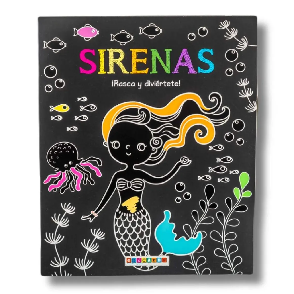Descubre y Diviértete (varios modelos), un libro para rascar que tiene coloridas imágenes ocultas debajo de la capa negra.