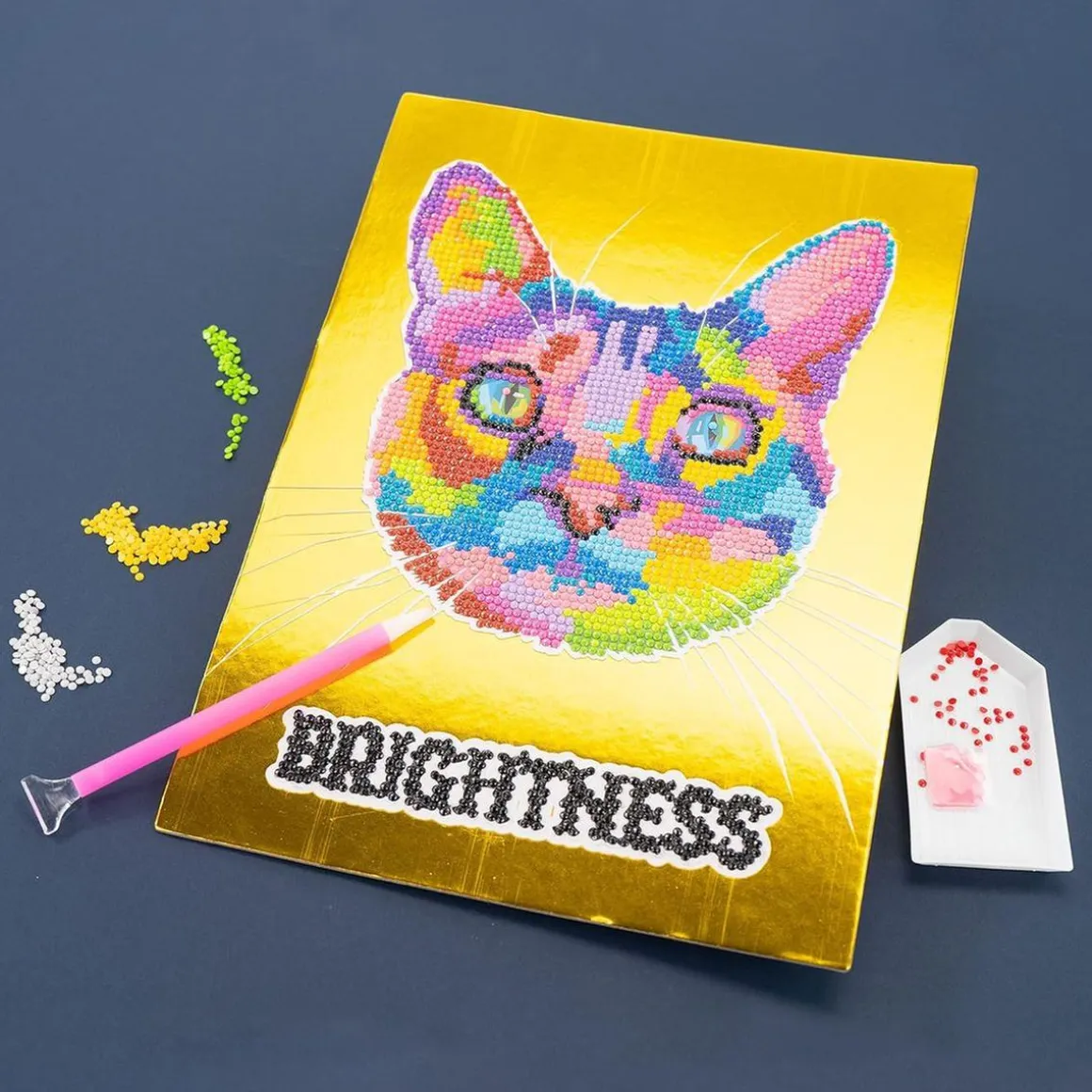 Para crear el precioso mosaico del Gato Luminoso, solo tienes que seguir la técnica de «colorea con números». Aplica cada gema en el lugar correspondiente siguiendo la guía numerada que encontrarás en la lámina. Las gemas brillantes se fijan fácilmente a la base adhesiva, creando un efecto espectacular.