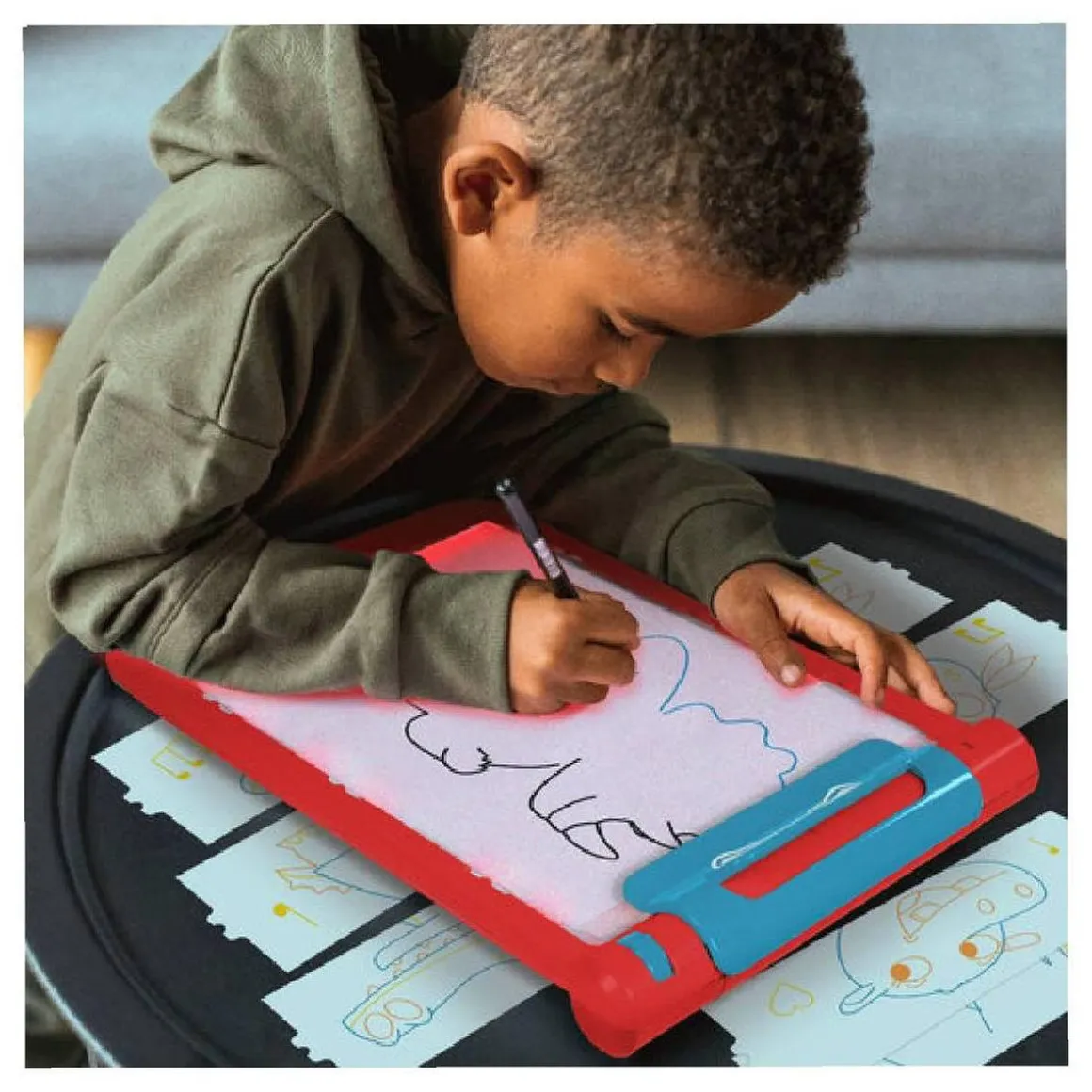Se compone de plataforma luminosa, rotulador y 24 plantillas.
