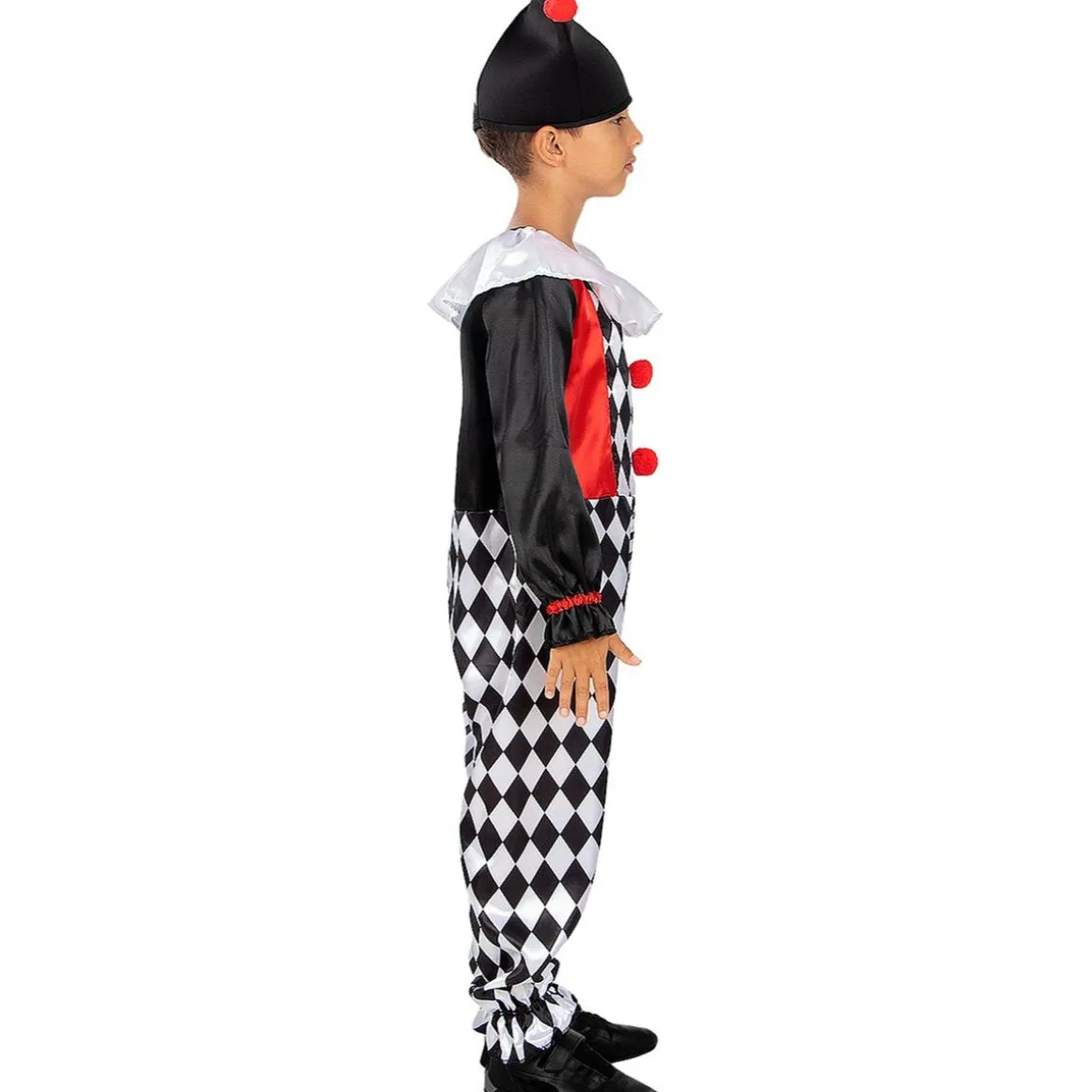 Combinación única de satén y poliéster en un mono con diseño geométrico audaz. Incluye gorro flexible con cascabeles para realzar el look festivo. ¡Ideal para primeros disfraces con comodidad garantizada!