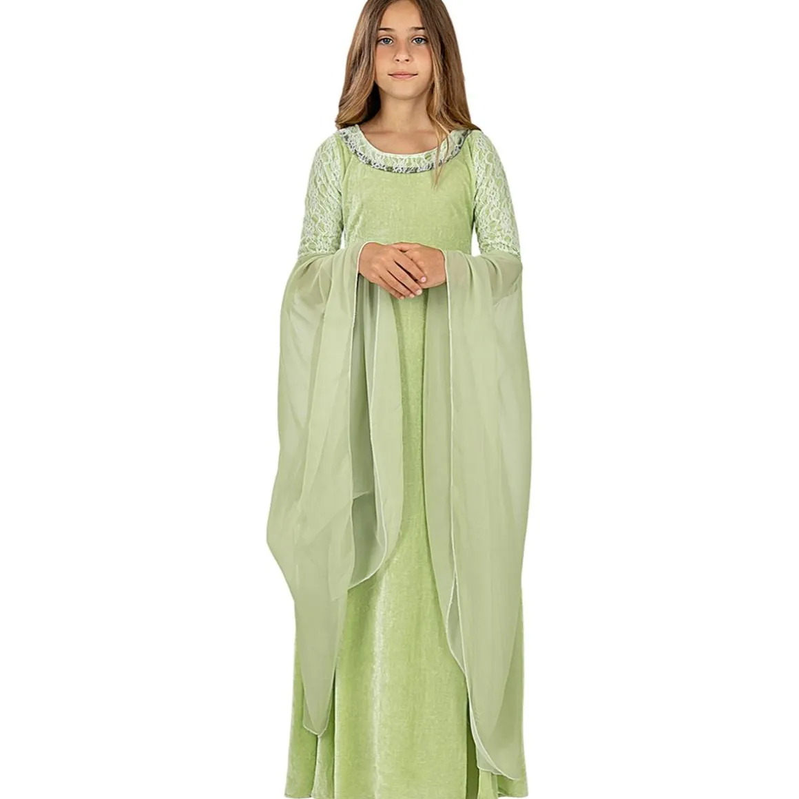 Con este disfraz talla 7-9 años, las niñas podrán encarnar a Arwen, la princesa elfa de Rivendel. El vestido refleja la elegancia de los elfos de la Tierra Media, aportando un toque mágico y encantador.