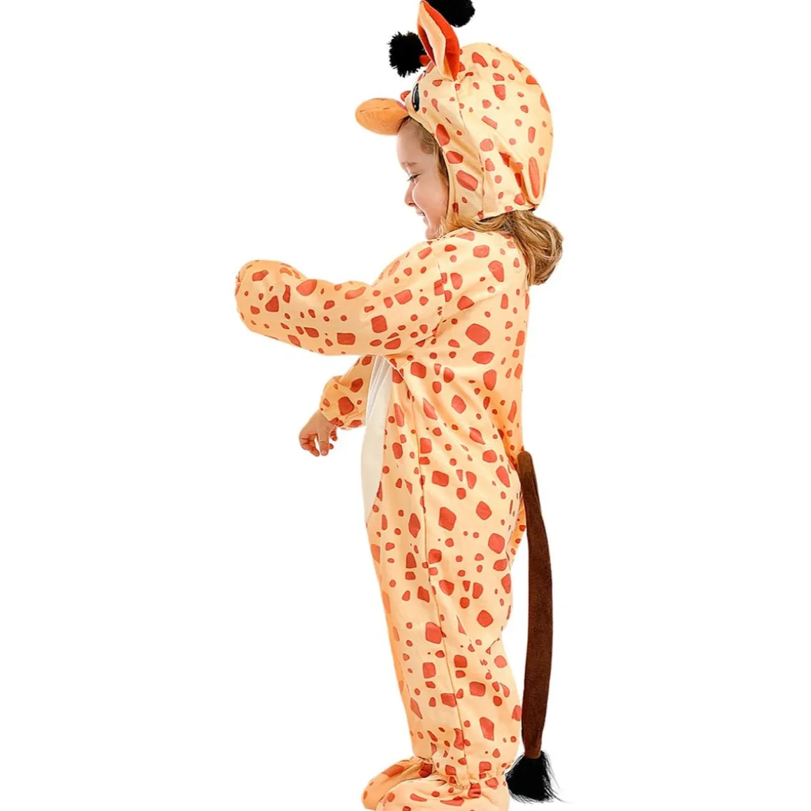El disfraz de jirafa en talla 12-24 meses convierte a los más pequeños en un simpático animal de la sabana. Incluye un mono con corchetes fácil de poner y quitar, un gorrito con orejas y cuernos, una cola y cubrepies a juego. Confeccionado en tejido suave, este conjunto es cómodo para que el bebé lo lleve durante horas, ideal para Carnaval, sesiones de fotos o fiestas familiares. Su diseño con manchas marrones y detalles cuidados transmite ternura y originalidad. Un disfraz práctico y divertido que hará que los más pequeños sean el centro de atención.