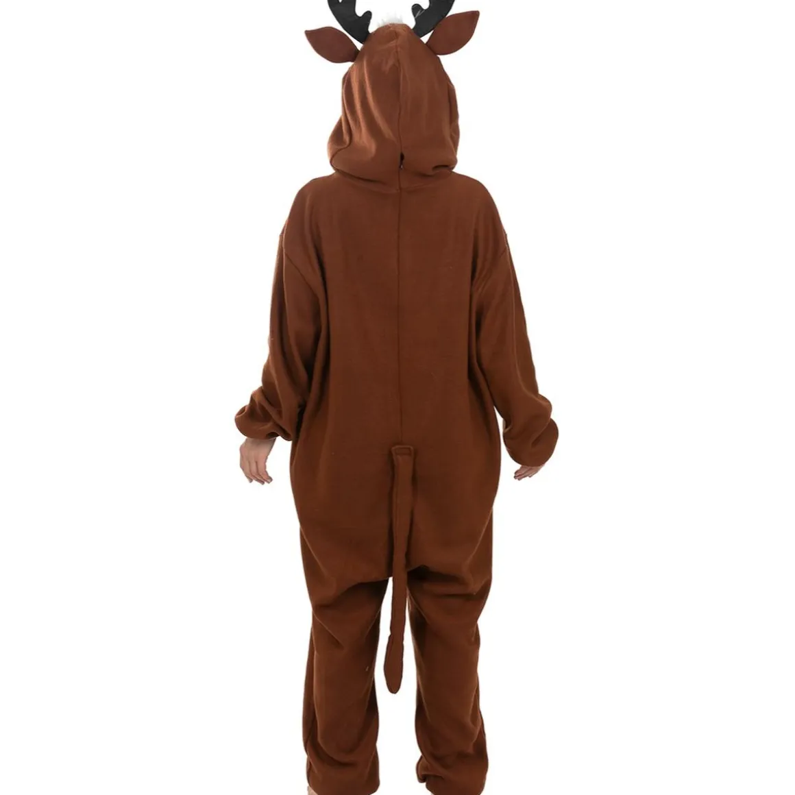 Este disfraz de reno en talla L-XL convierte cualquier celebración en una escena navideña llena de humor. El diseño de mono con capucha integra orejas, cuernecitos y hocico bordado para una caracterización inmediata y fotogénica, sin complementos extra. La pieza completa facilita vestir y desvestir, y su corte holgado permite llevar ropa debajo para salir a la calle en cabalgatas o pasacalles. La capucha envolvente mantiene el gesto del personaje siempre visible, mientras que el cuerpo del traje ofrece libertad de movimiento para animar, bailar o repartir regalos. Ideal para comparsas, eventos de empresa, funciones escolares o como uniforme del “ayudante” de Papá Noel. Un look simpático, reconocible y versátil que pone el tono festivo allá donde aparece.