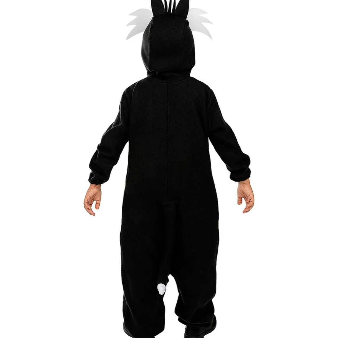 Este disfraz en talla 5-6 años convierte a los niños en Silvestre, el carismático gato de Looney Tunes. Su mono con capucha, que combina el negro con detalles blancos, recrea a la perfección la imagen del personaje que siempre persigue a Piolín. Es un diseño pensado para la comodidad y diversión de los pequeños.