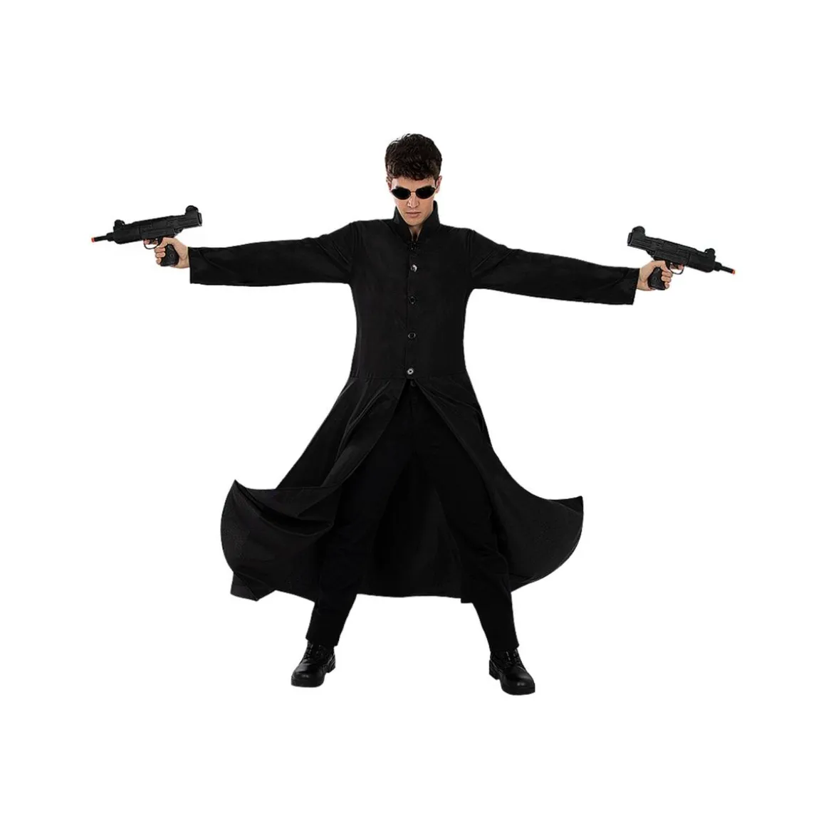 Vístete como el elegido con abrigo largo y gafas icónicas. El corte recto estiliza y permite superponer prendas, manteniendo la silueta cinematográfica. Tejido principal en poliéster: ligero, resistente y de fácil mantenimiento. Perfecto para convenciones, fiestas temáticas o espectáculos de acción. Combínalo con botas negras y camiseta oscura para completar el look. Cuidados: lavado a mano en agua fría y secado colgado; plancha suave del revés. Un clásico de la ciencia ficción listo para detener balas (de imaginación) en cámara lenta.