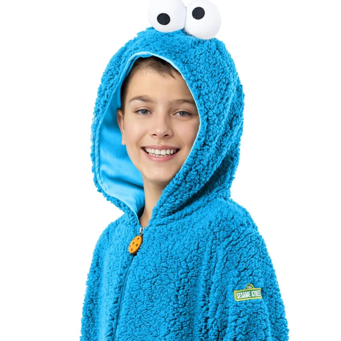 El disfraz del Monstruo de las Galletas en talla 10-12 años transforma a los más pequeños en uno de los personajes más queridos de Barrio Sésamo. Incluye un mono con capucha confeccionado en poliéster polar azul, suave, cálido y cómodo. La capucha bordada con grandes ojos saltones añade autenticidad y simpatía al conjunto. Su diseño holgado permite jugar, bailar y disfrutar sin limitaciones, siendo ideal para carnaval, cumpleaños, representaciones teatrales o simplemente para disfrazarse en casa. Es un disfraz práctico, entrañable y muy fotogénico, pensado para garantizar diversión y comodidad durante horas.