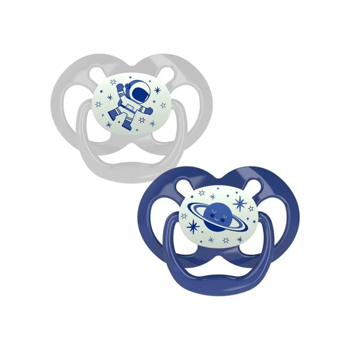 Su forma ortodóntica y su base fina reducen la presión sobre el paladar y la mandíbula, asegurando un desarrollo oral saludable mientras calma al bebé. Una de sus características más destacadas es su escudo que brilla en la oscuridad, lo que facilita encontrarlo rápidamente durante la noche, sin molestias para el bebé ni para los padres. Este diseño innovador no solo es funcional, sino que también promueve un descanso tranquilo para el bebé, ayudando a que el pequeño se sienta seguro y cómodo.