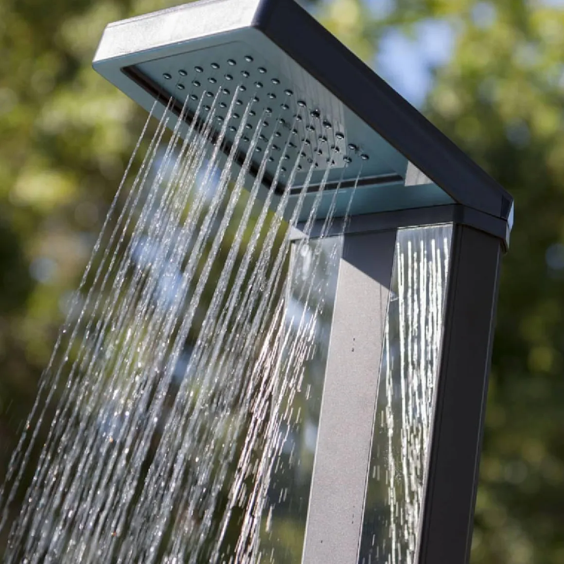 Ducha solar aluminio con sprayer 38L, una ducha solar de aluminio con depósito acumulador con una capacidad de 38 litros.