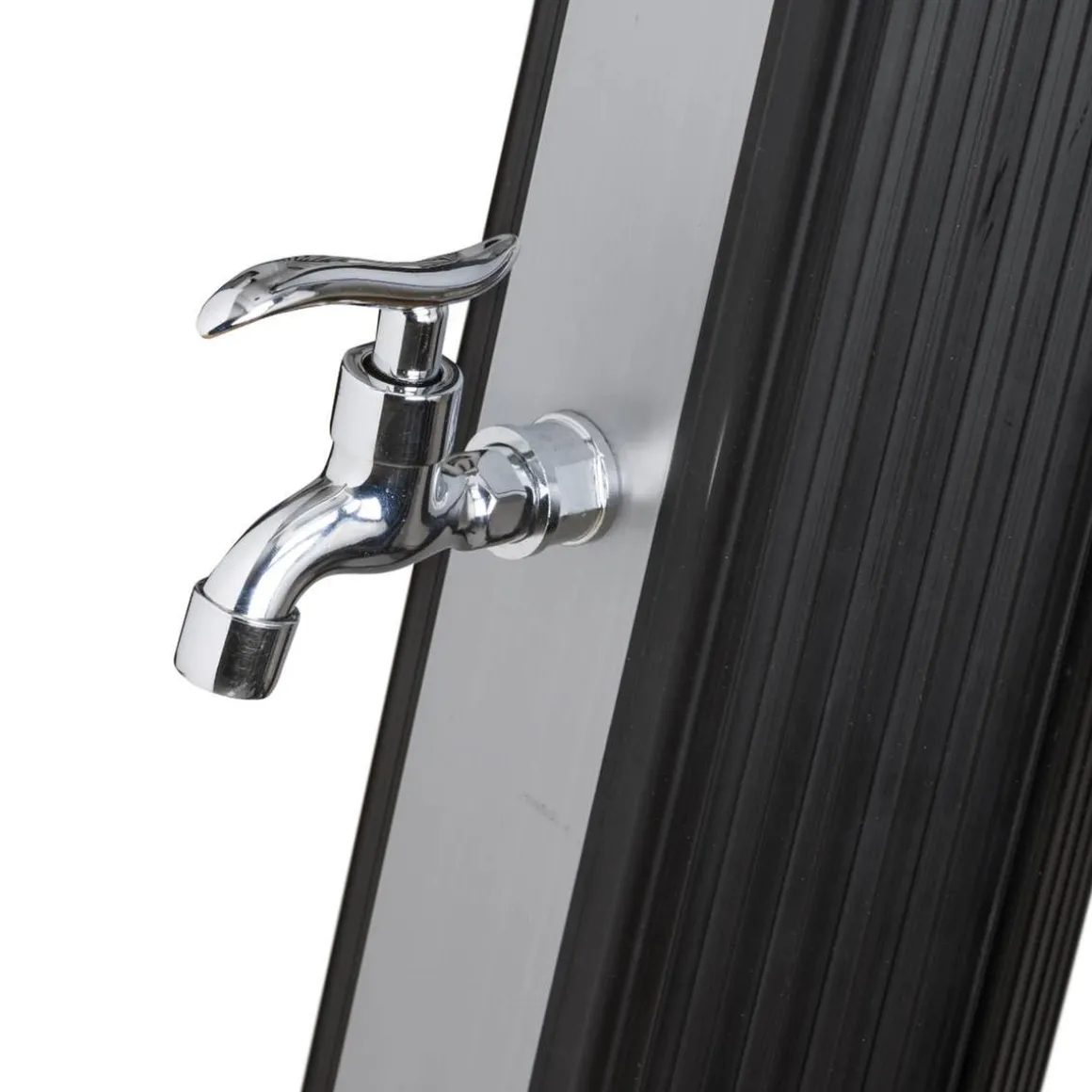 Esta ducha solar es ideal para instalar en el jardín o cerca de la piscina y disfrutar de agua caliente de forma rápida.