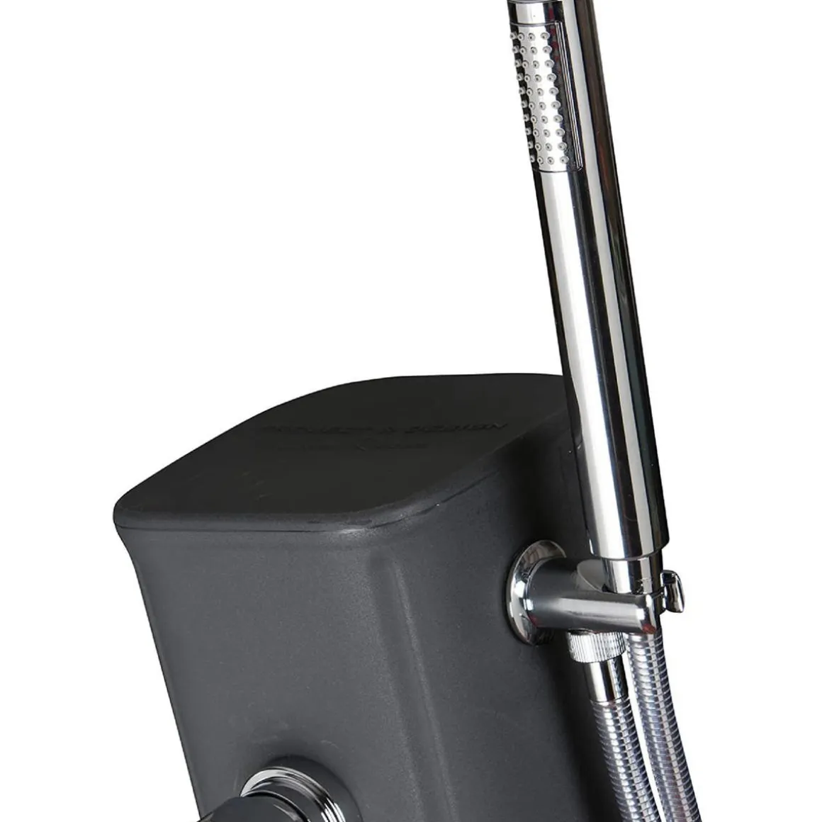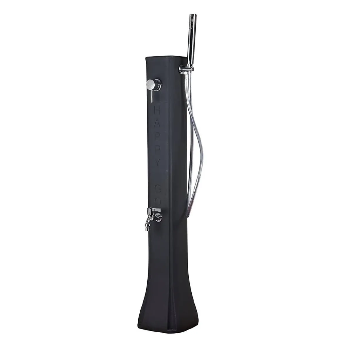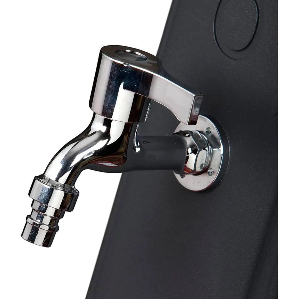 Esta ducha solar es ideal para instalar en el jardín o cerca de la piscina y disfrutar de agua caliente de forma rápida.