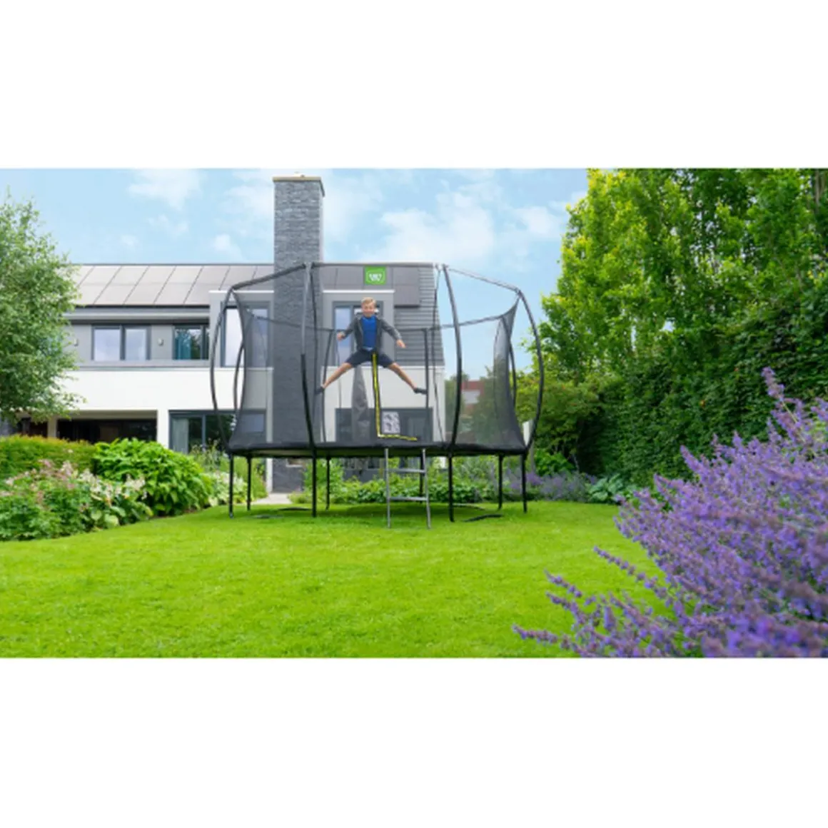 El trampolín Exit Silhouette en patas es un trampolín redondo de buena calidad.