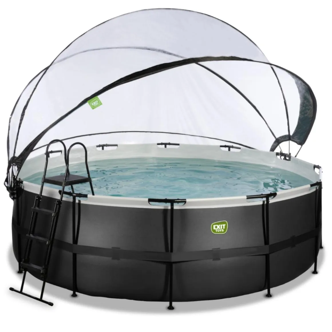 Exit – Piscina Black Leather diámetro 427 x 122 cm con filtro de arena y cúpula, una piscina redonda con efecto de cuero negro y cúpula.