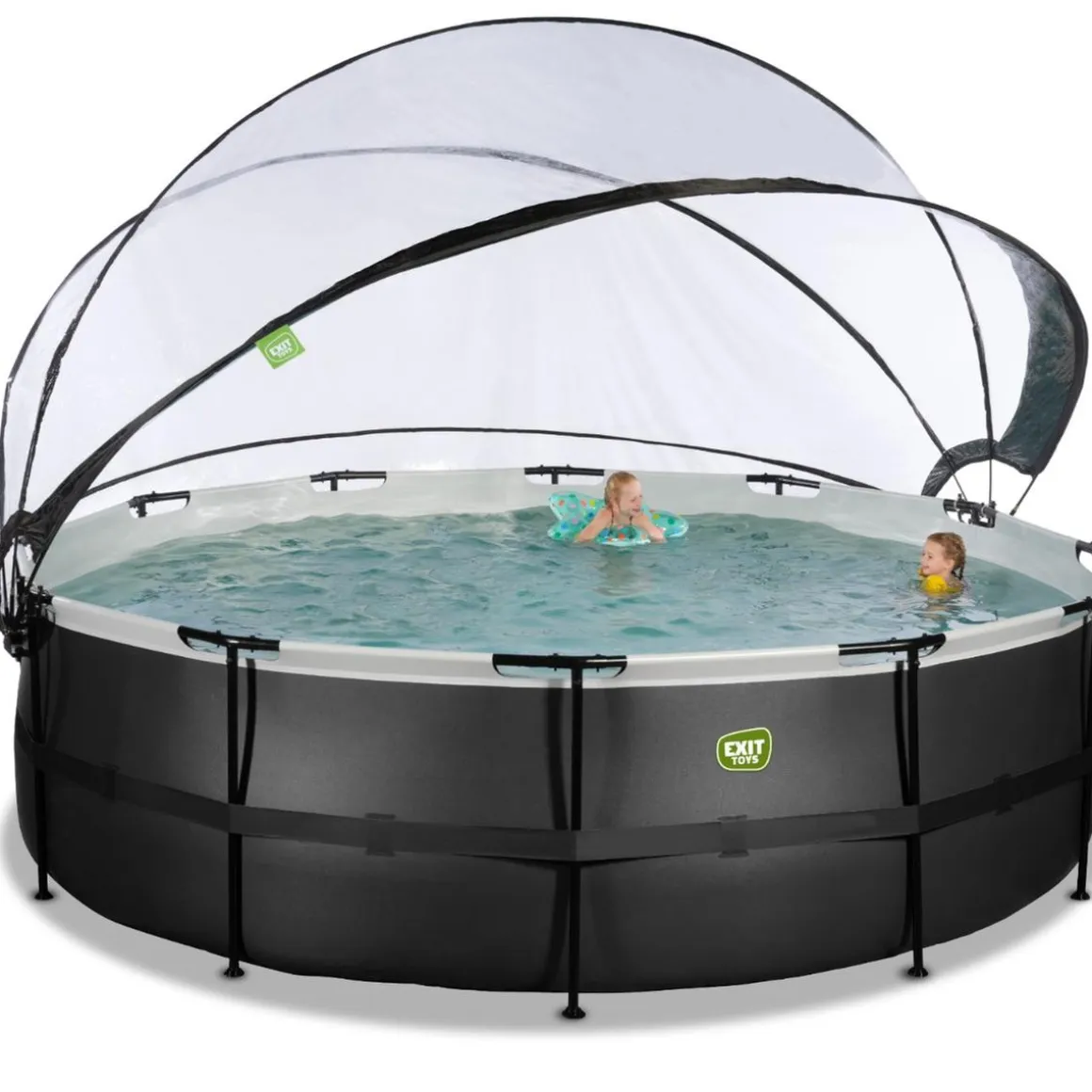 Exit – Piscina Black Leather diámetro 488 x 122 cm con filtro de arena y cúpula, una piscina redonda con efecto de cuero negro y cúpula.