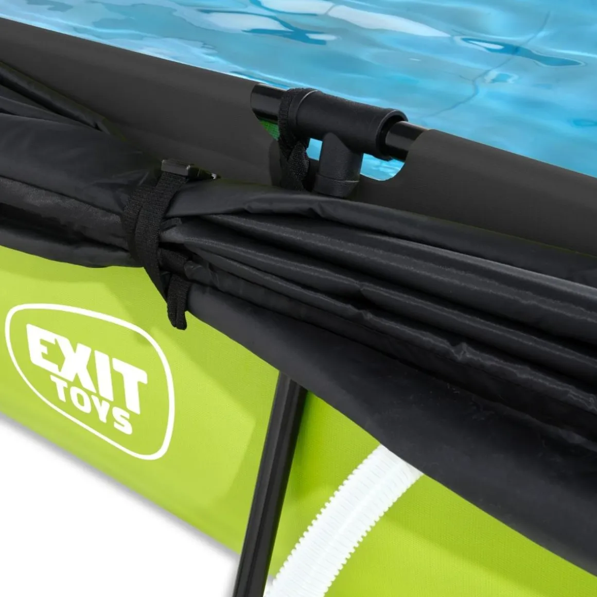 El toldo único de EXIT Toys ofrece una protección óptima contra el sol. Gracias al mecanismo de plegado fácil de usar, creará sombra parcial o total en la piscina en poco tiempo, de modo que incluso cuando el sol está realmente alto, podrás nadar sin problemas. Las bandas ajustables permiten mover el toldo según la posición del sol y asegurarlo a cualquier altura deseada. El toldo tiene un elegante diseño negro con un acabado de alta calidad.