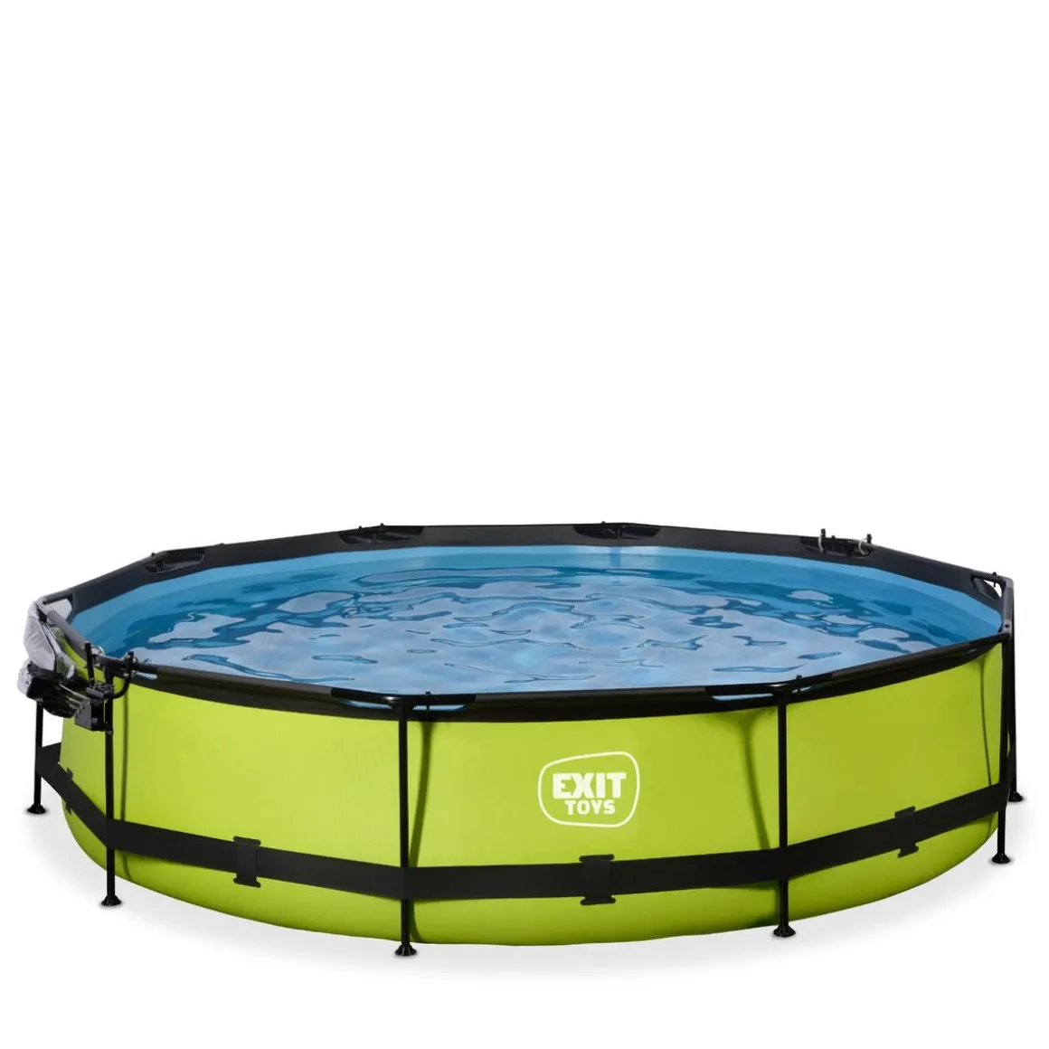Exit – Piscina Lime verde diámetro 360 x 76 cm con filtro y cúpula transparente, una piscina redonda de color verde lima que se integra perfectamente en tu jardín.