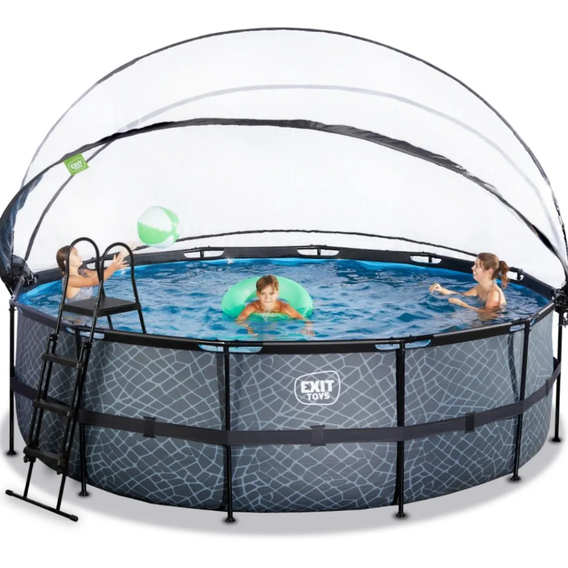 El gran diámetro de la piscina ofrece suficiente espacio para relajarse en un colchón de aire flotante. ¿O prefieres nadar bajo el agua? La piscina Stone tiene 122 centímetros de profundidad y te permite sumergirte en ella.
