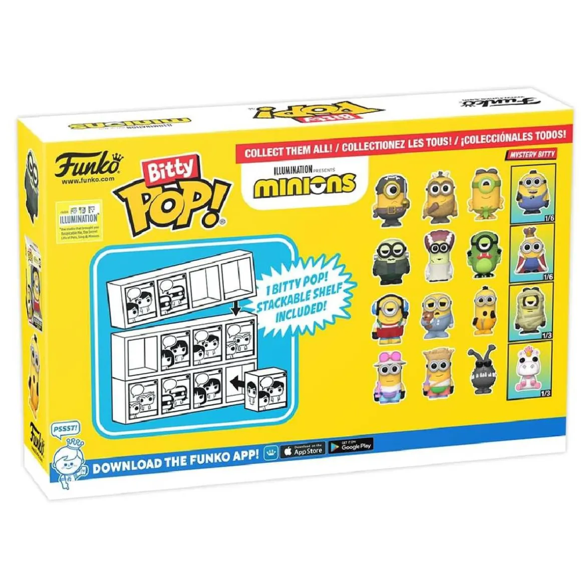 Funko Bitty POP! – Minions – Pack 4 figuras (varios modelos), 4 personajes en miniatura de los Minions, uno de ellos es sorpresa.