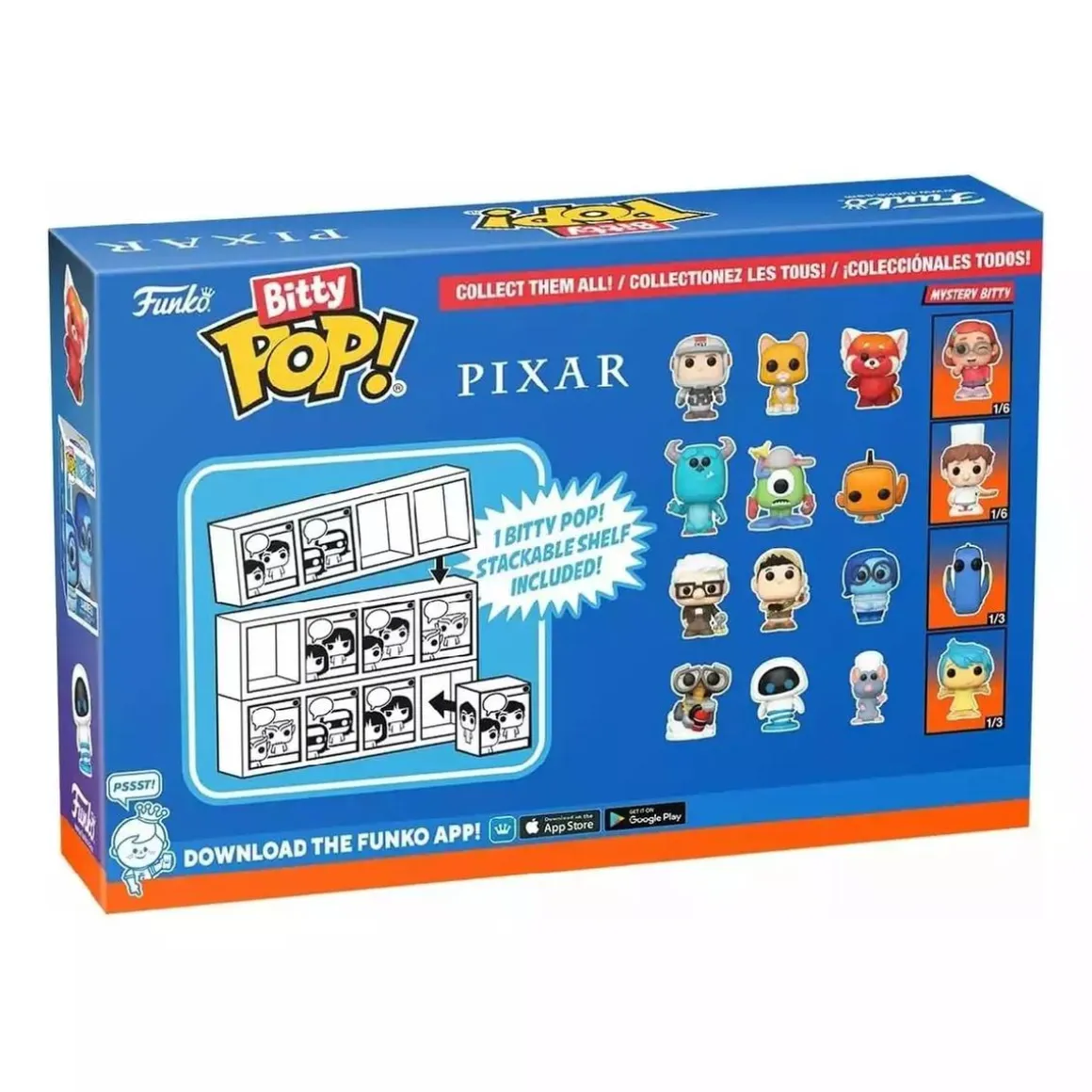 Transforma tu colección con las irresistibles figuras Funko Pop! Bitty Pop – Pixar. Estas miniaturas adorables dan vida a los personajes más icónicos de Pixar y son perfectas para fans, coleccionistas o para quien busque un toque único y encantador.