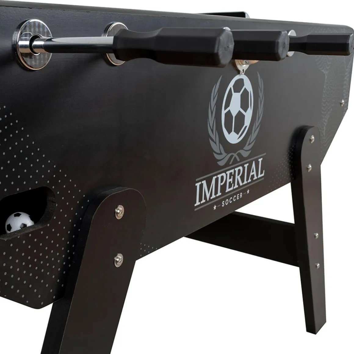 El futbolín profesional Imperial es de gran tamaño con un diseño de línea moderna. Fabricado con una estructura de madera contrachapada ofreciendo una alta resistencia a la deformación. ¿A qué esperas para hacerte con este futbolín? Sus porterías, contadores y acabados de aluminio ofrecen al futbolín un toque diseño y profesional. Tiene unas medidas de: 142 x 74 x 87,5 cm y un peso de 49 kg.