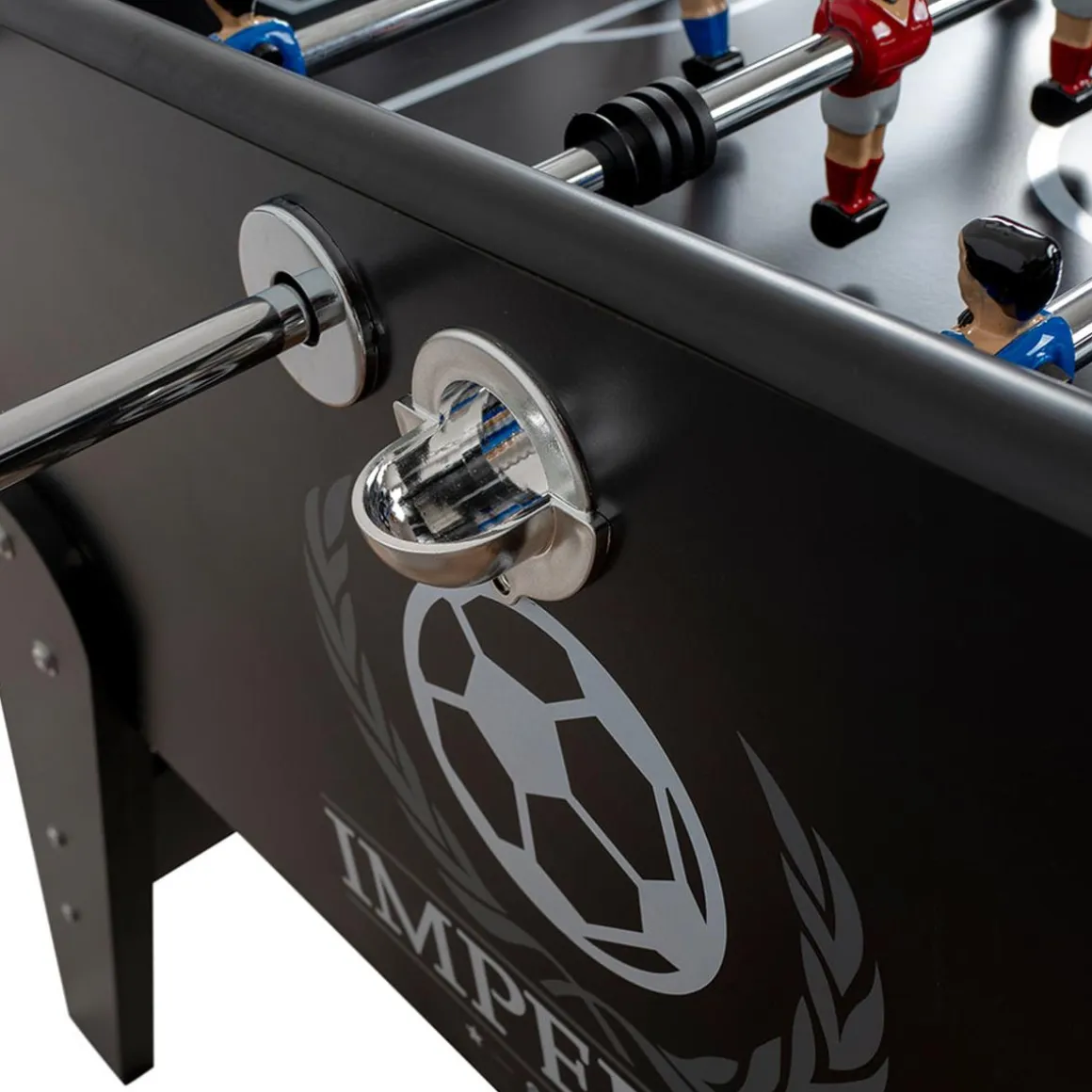 - Las varas del futbolín son de metal con 22 jugadores y mangos de plástico.