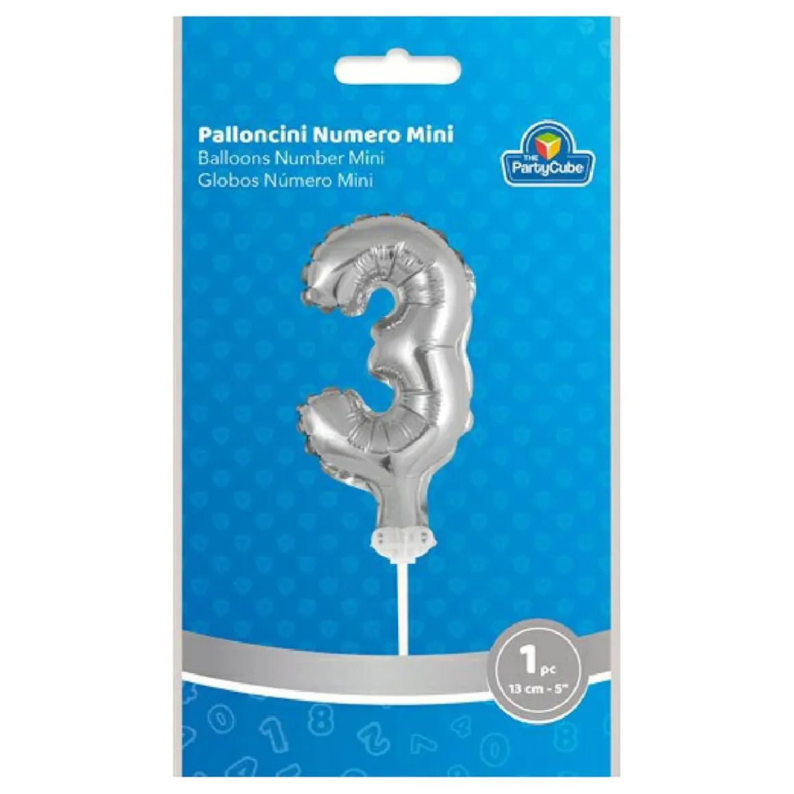 Globo aluminio plateado número 3, un globo de cumpleaños.