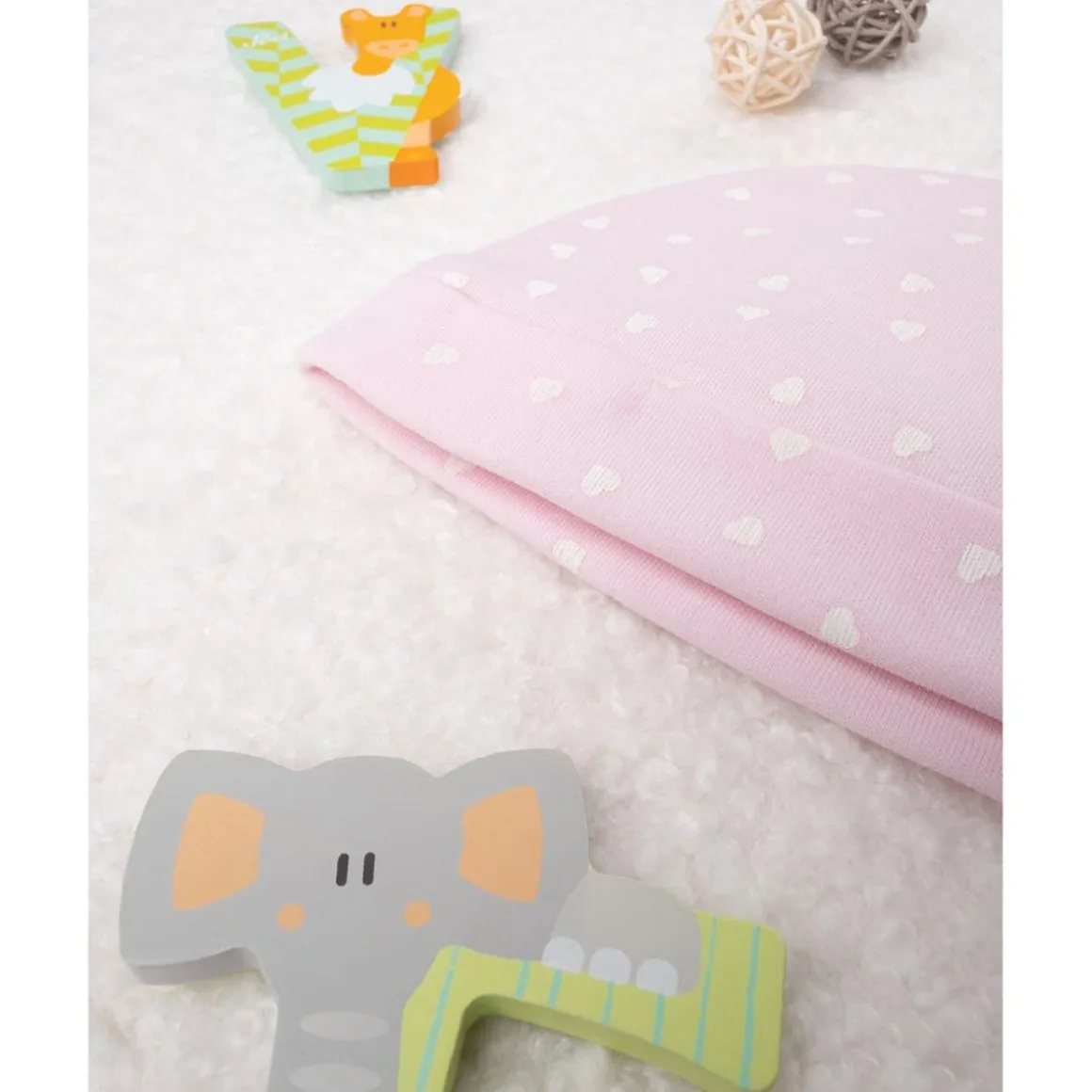 Sombrero tierno de niña en 100% algodón. La prenda se presenta en fondo rosa pastel con estampado allover “Cuori” en color blanco. La vestimenta es suave y envolvente, el sombrero es adecuado para ocasiones casuales/elegantes. Accesorios no a la venta. El paquete contiene solo la prenda de ropa.
