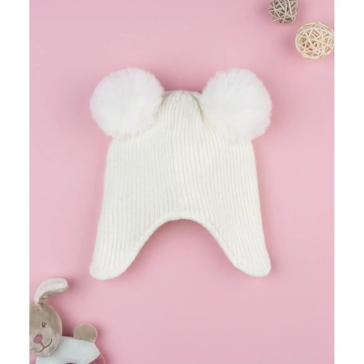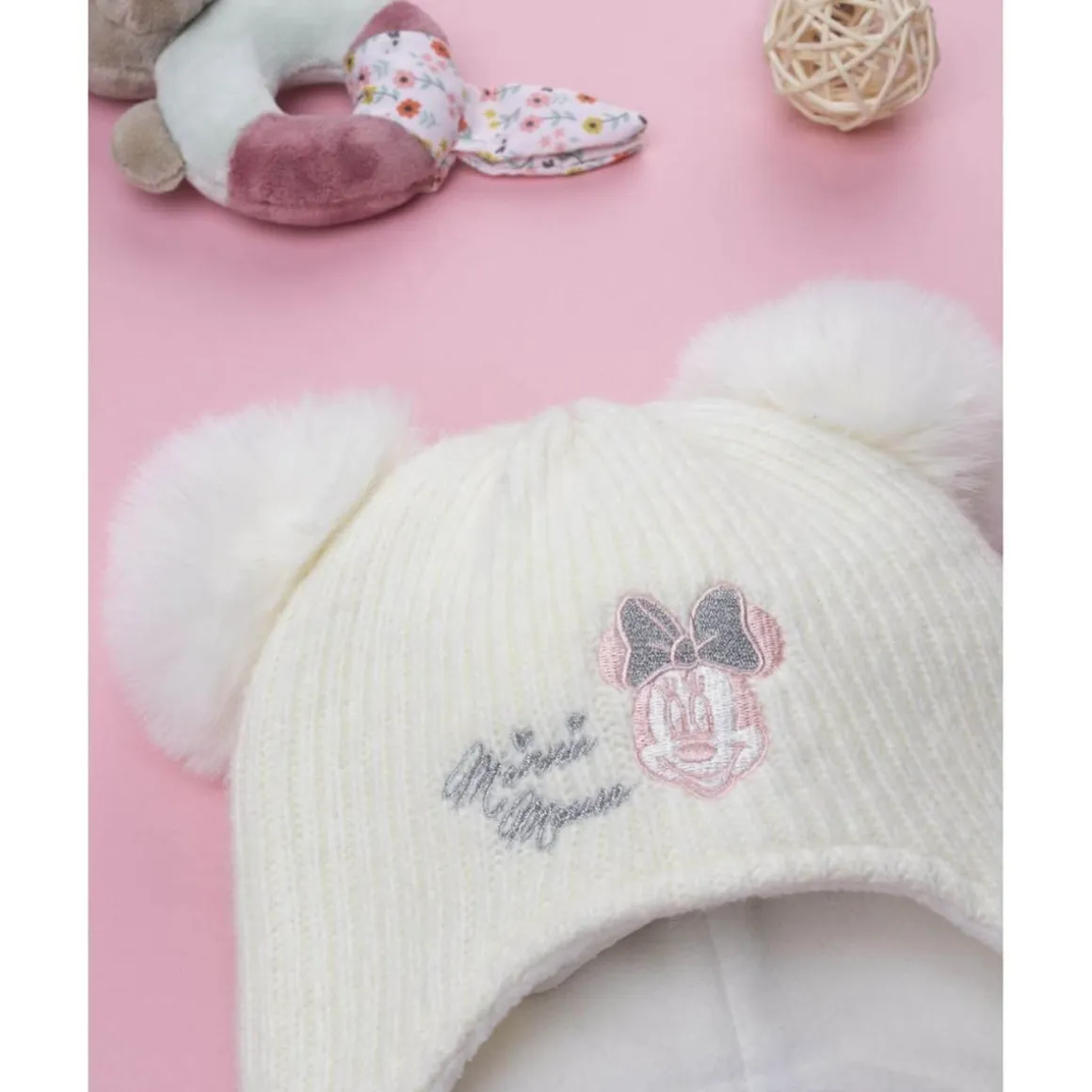 Este gorro tipo peruano mantiene a la niña abrigada con un estilo dulce y confortable. El diseño en color crema incorpora un bordado de Minnie y un pom-pom a juego, añadiendo un toque divertido que combina fácilmente con abrigos y bufandas.