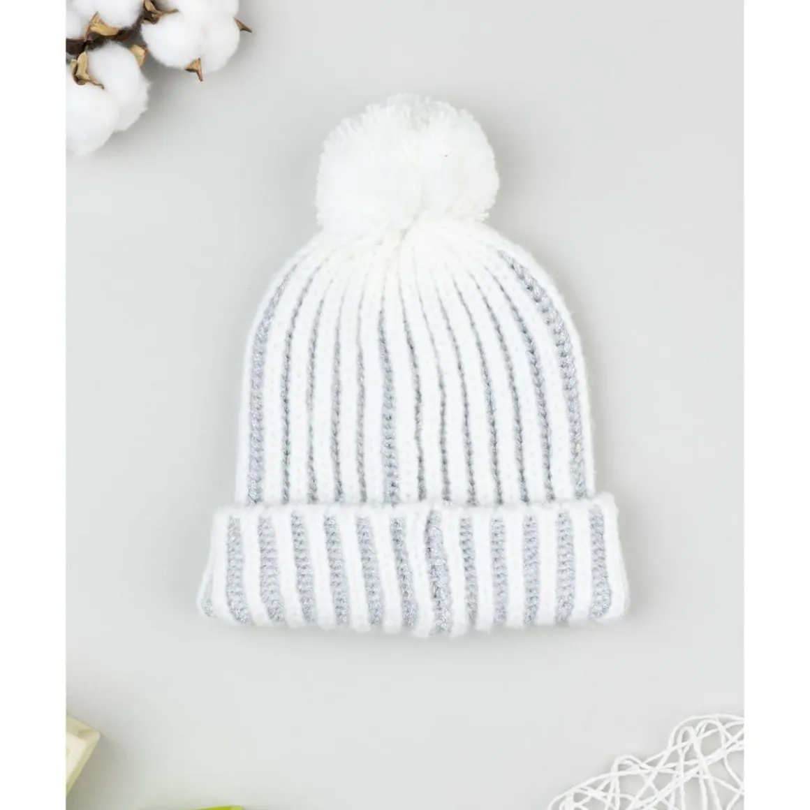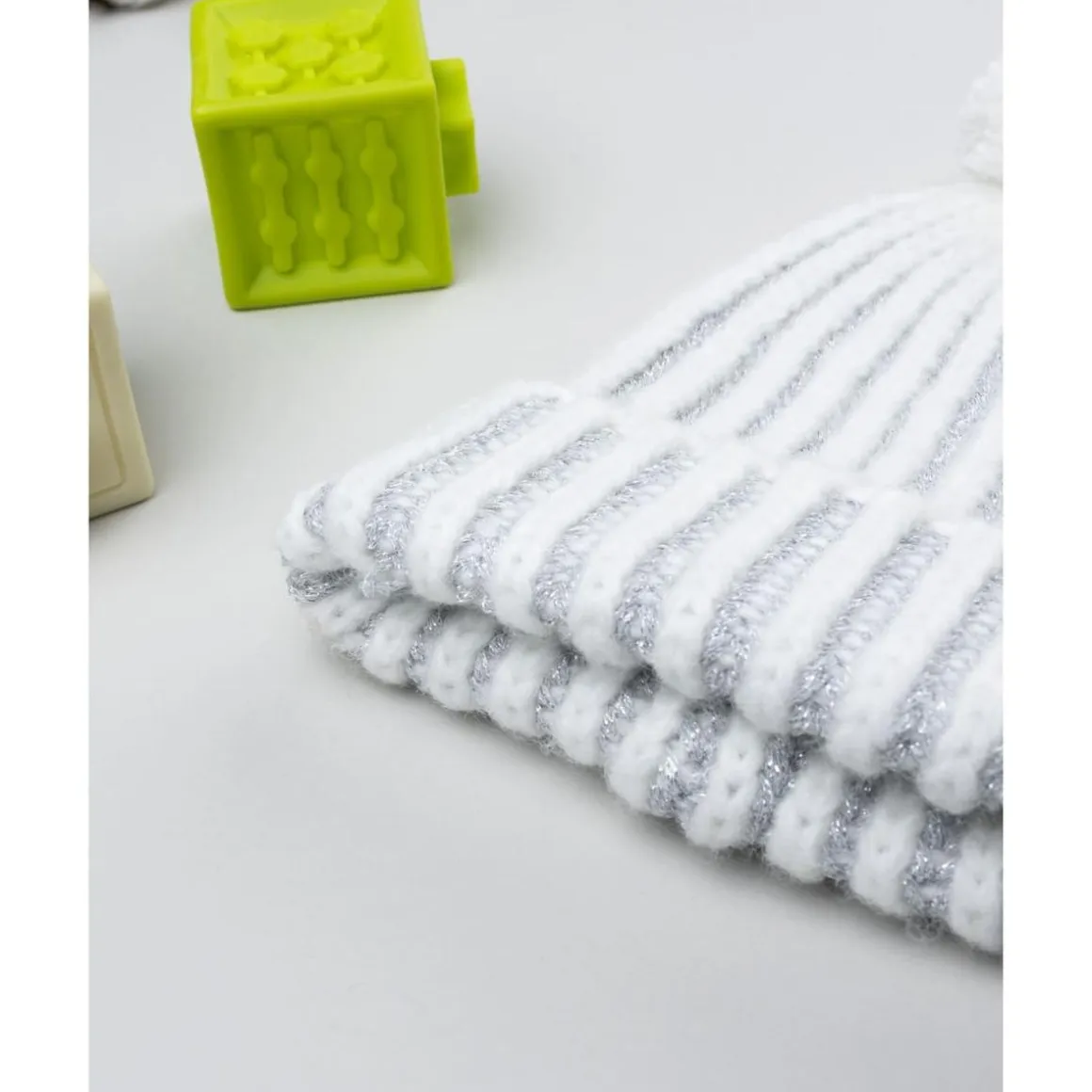 Características: Gorro de punto, color gris, hilo lurex, vuelta y pompón, ajuste suave y cómodo.
