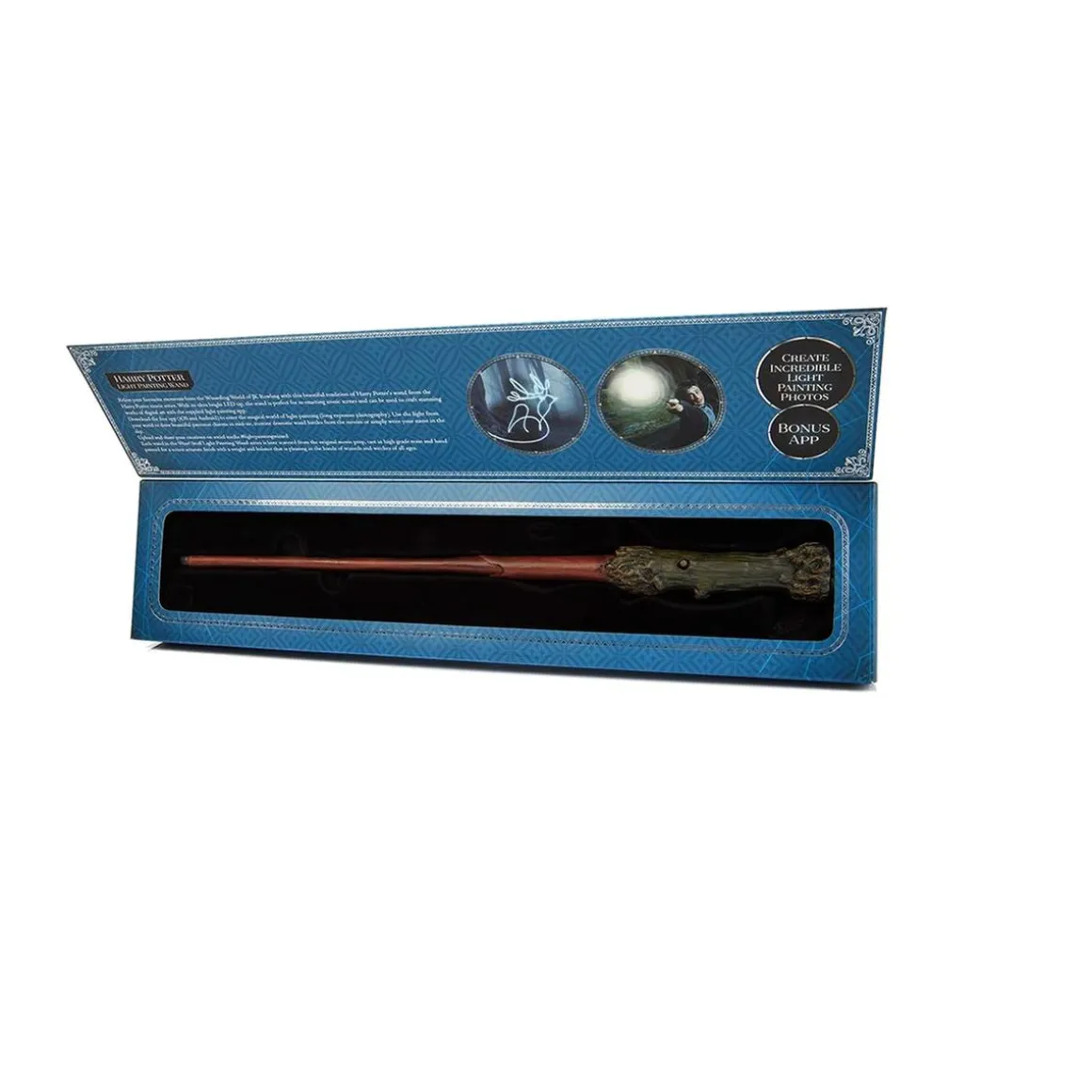 Utiliza el led brillante de la varita mágica para recrear los fabulosos duelos mágicos, lanzar hechizos y hacer aparecer tu patronus por el aire.