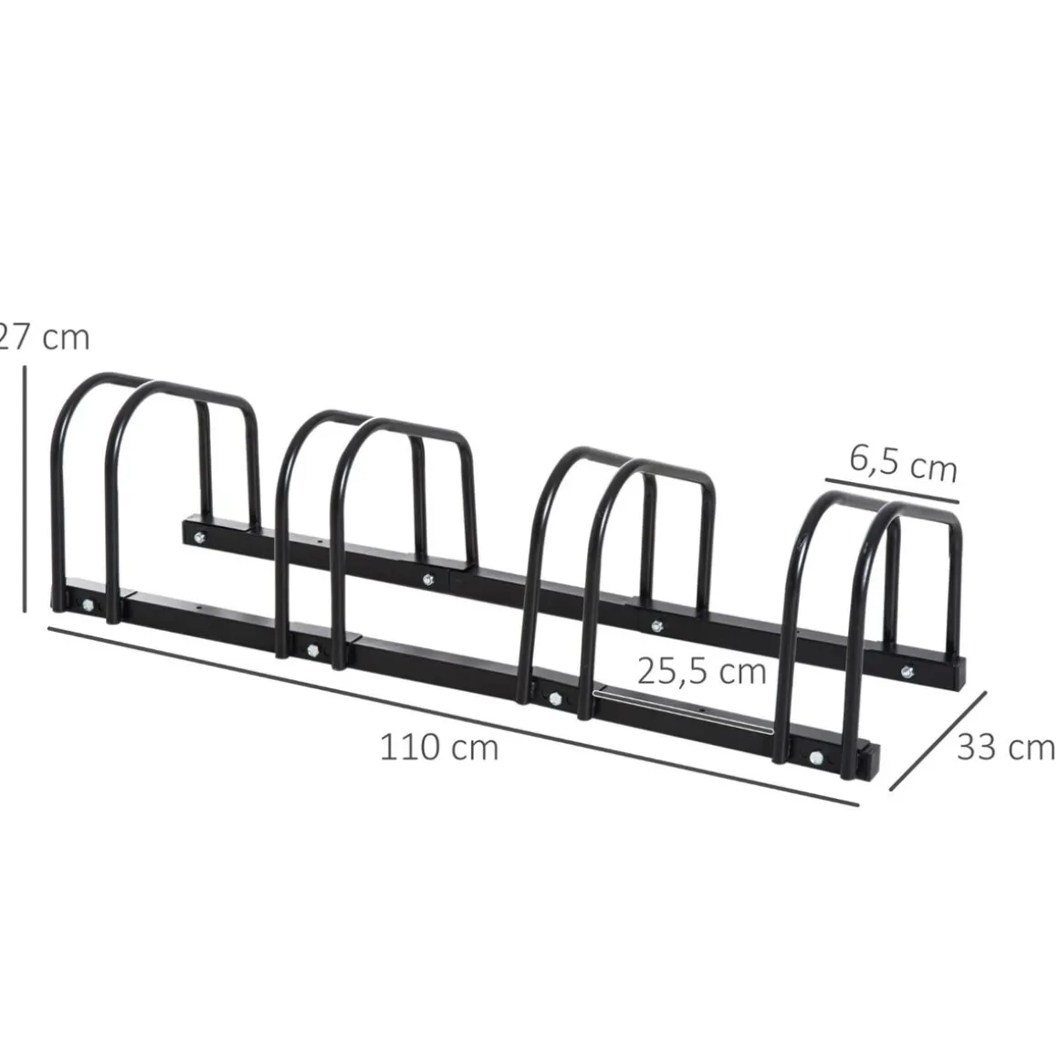 Homcom – Aparcamiento para 4 bicicletas Negro, tiene capacidad para que puedas estacionar hasta 4 bicicletas, aunque al tener una estructura desmontable podrás instalar los soportes de forma individual.