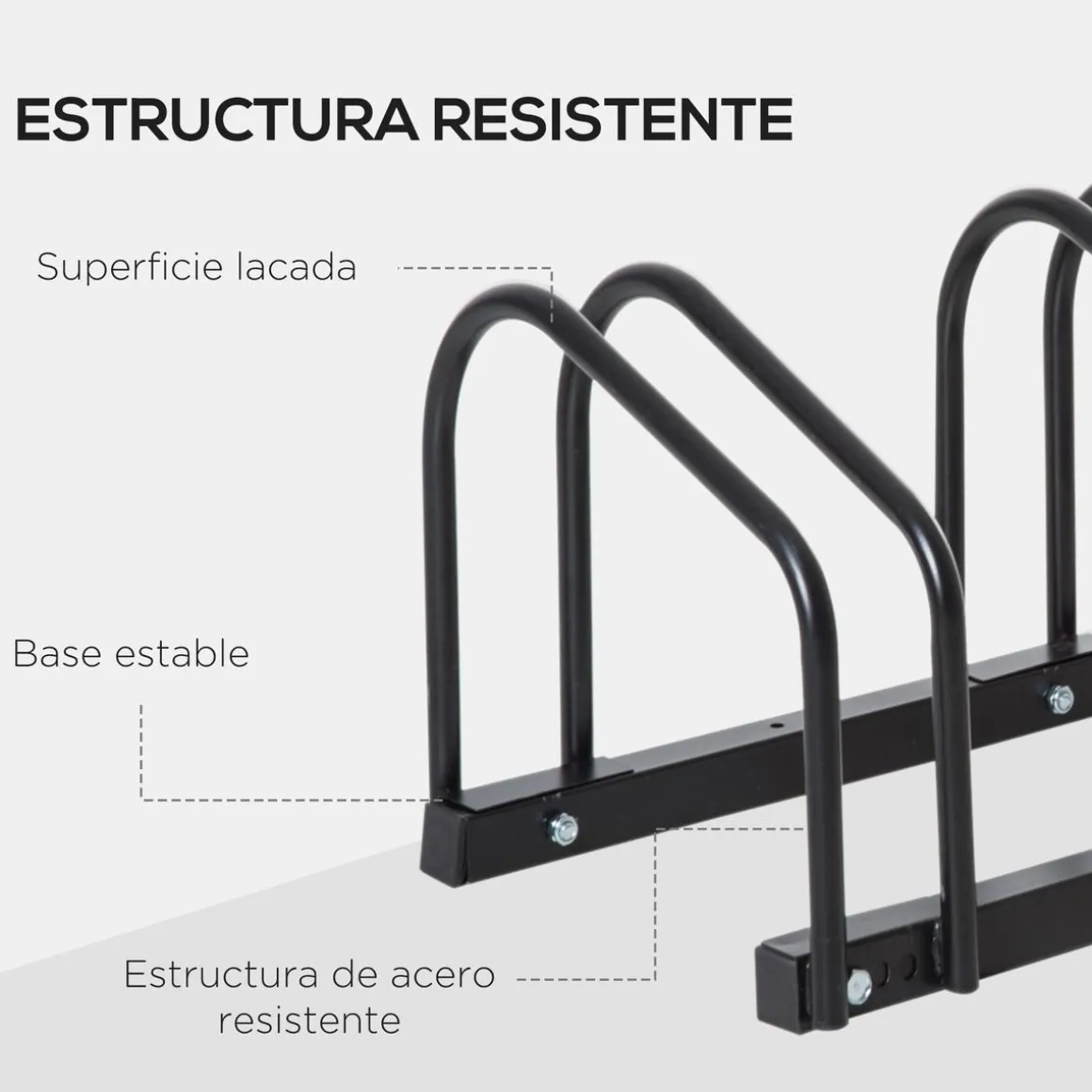 Si no tienes espacio suficiente en casa o no sabes como estacionar tus bicicletas de manera ordenada, los aparcamientos para bicis de HOMCOM son la solución. Se pueden instalar en suelos tanto de interior como exterior y vienen con los tornillos incluidos para su montaje. Fabricados con una estructura de acero desmontable, puedes utilizar los soportes de forma individual o montarlos según necesidad. A partir de ahora tus bicicletas siempre estarán bien aparcadas y seguras.