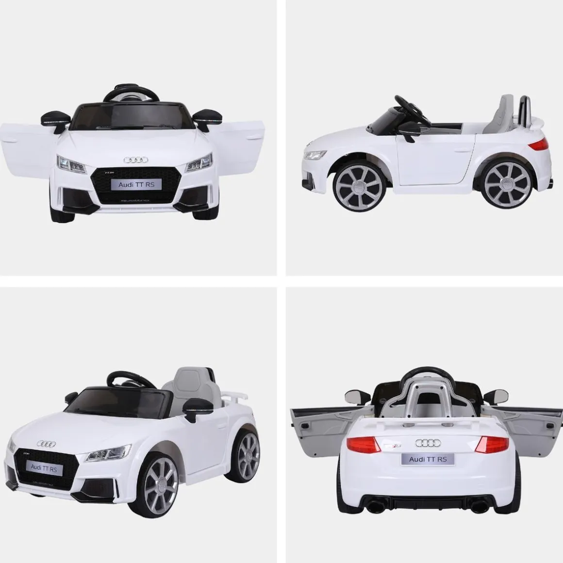 Homcom – Audi TT eléctrico blanco, un vehículo con marcha hacia delante y hacia atrás y con mando a distancia para control parental.