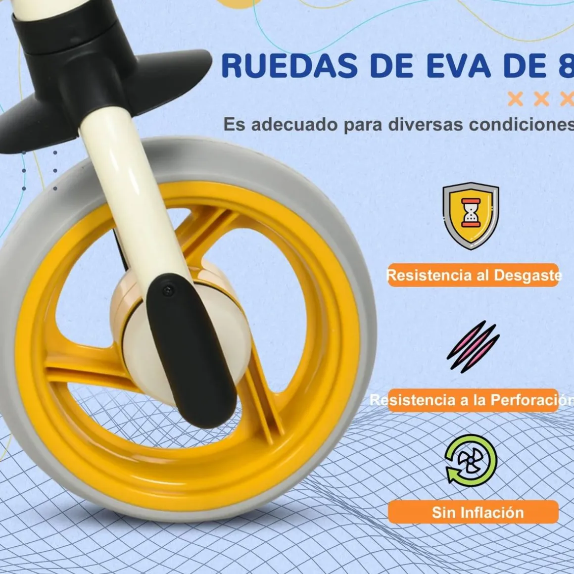 - Ruedas de EVA anti pinchazos para una conducción suave.