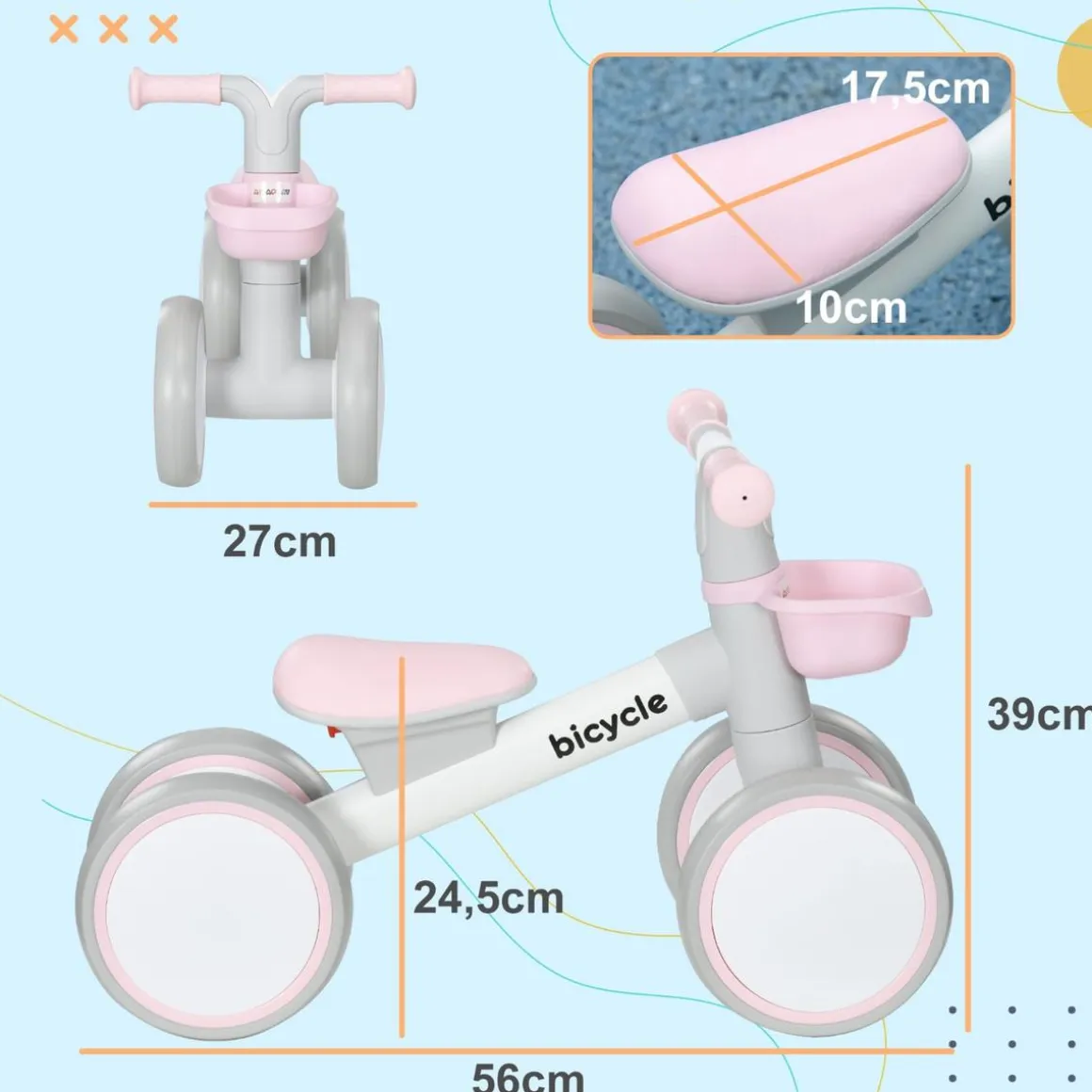 Homcom – Bicicleta sin pedales Rosa, una bici sin pedales que ofrece a los más pequeños una forma entretenida de aprender a equilibrarse y moverse, fomentando la actividad física desde temprana edad.
