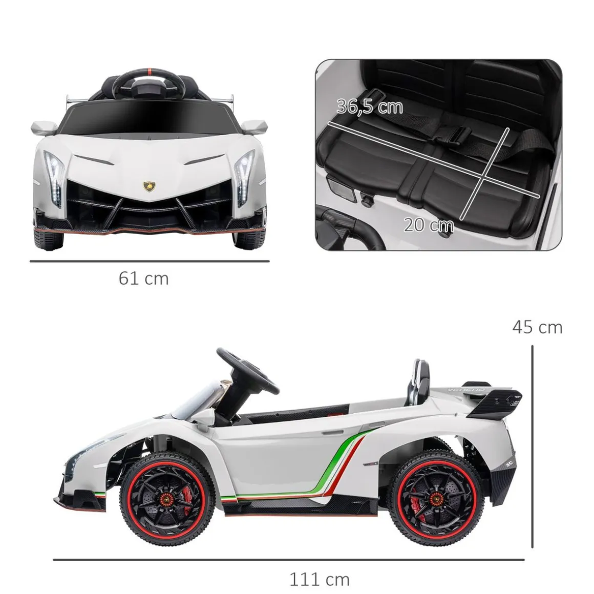Homcom – Coche Eléctrico Lamborghini Veneno Blanco, ¿Estás buscando un vehículo eléctrico infantil para tus hijos? ¡Mira qué bonito es este Lamborghini Veneno de HOMCOM!