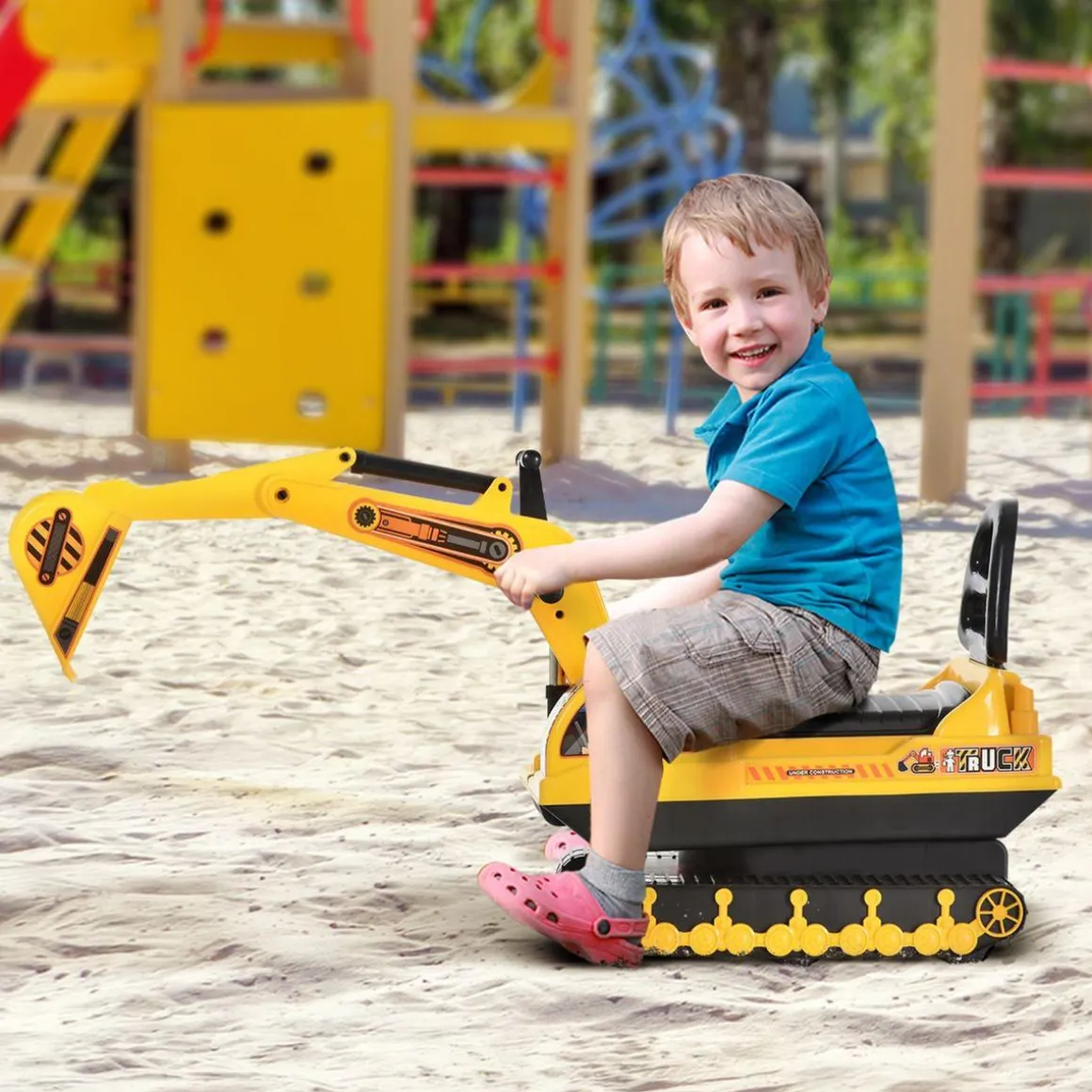 Esta excavadora ayudará a tu pequeño a moverse de forma independiente: le permite tocar el suelo con los pies y empujar fácilmente hacia adelante o hacia atrás.