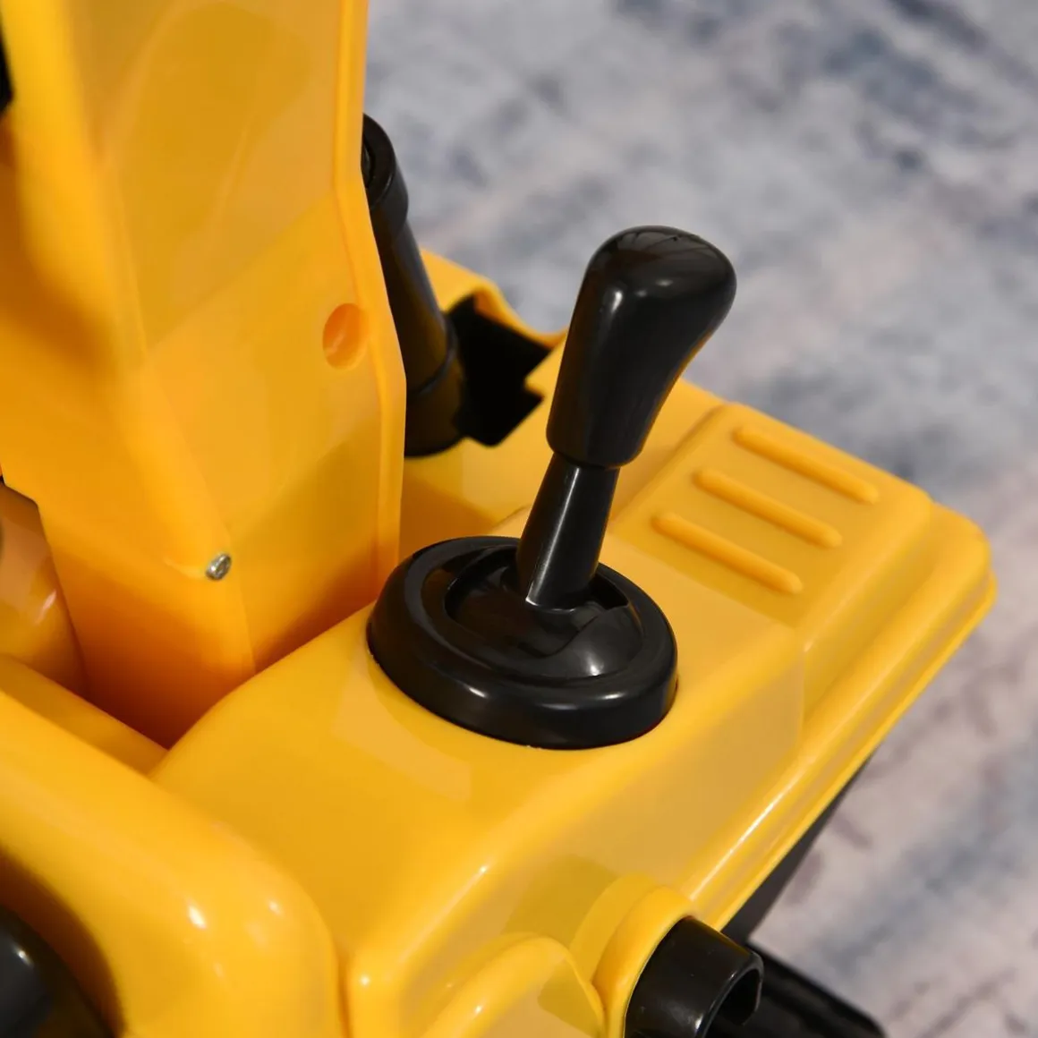 El brazo de la excavadora se mueve hacia arriba y hacia abajo gracias a la palanca especial, y el asiento, además de girar 90°, esconde un compartimento de almacenaje para llevar pequeños juguetes, una cantimplora, etc.