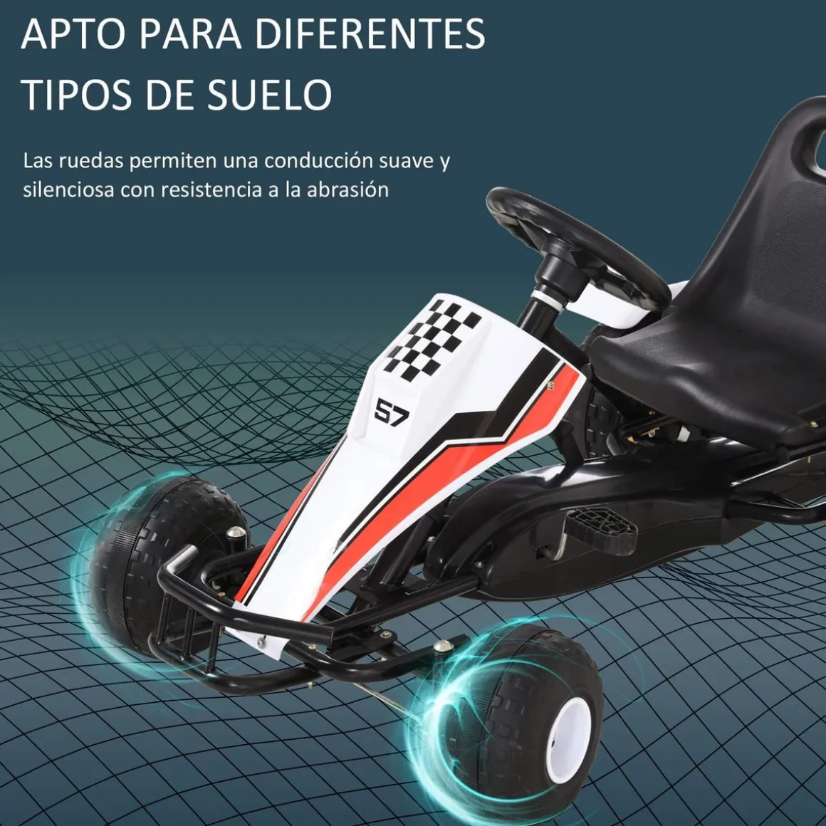 Homcom – Go Kart infantil pedales. ¿Quieres que tu hijo se aleje de los dispositivos electrónicos? ¿Quieres que tenga una infancia más divertida y educativa? Este Go-Kart con pedales es la opción ideal para mantenerlo alejado de las pantallas.