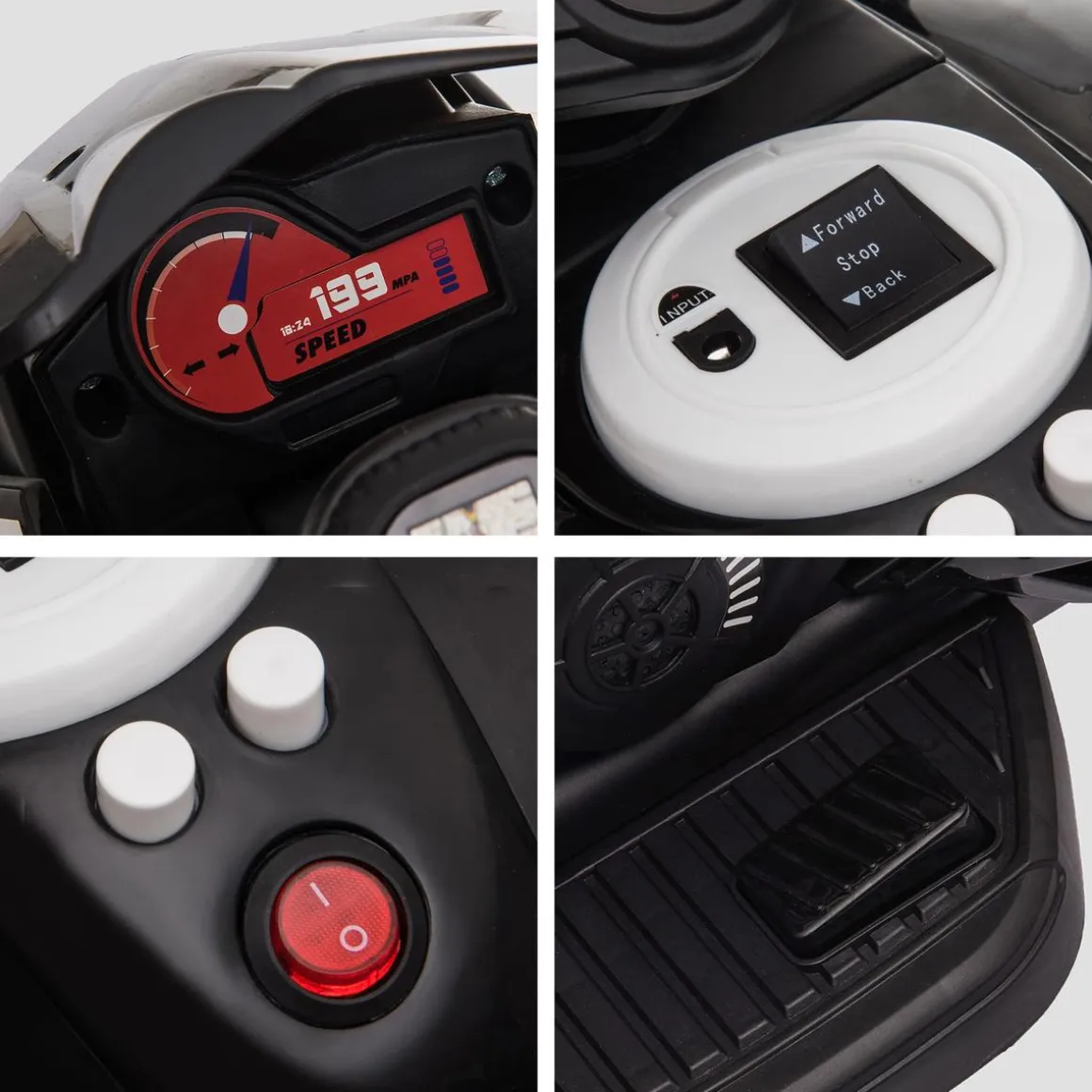 Esta moto infantil arranca a baja velocidad, permitiendo que los pequeños puedan responder oportunamente a situaciones inesperadas. Con una velocidad máxima limitada de 3 km por hora, este vehículo para niños permite que tu hijo se divierta y esté seguro. Además, se controla fácilmente mediante su pedal acelerador.