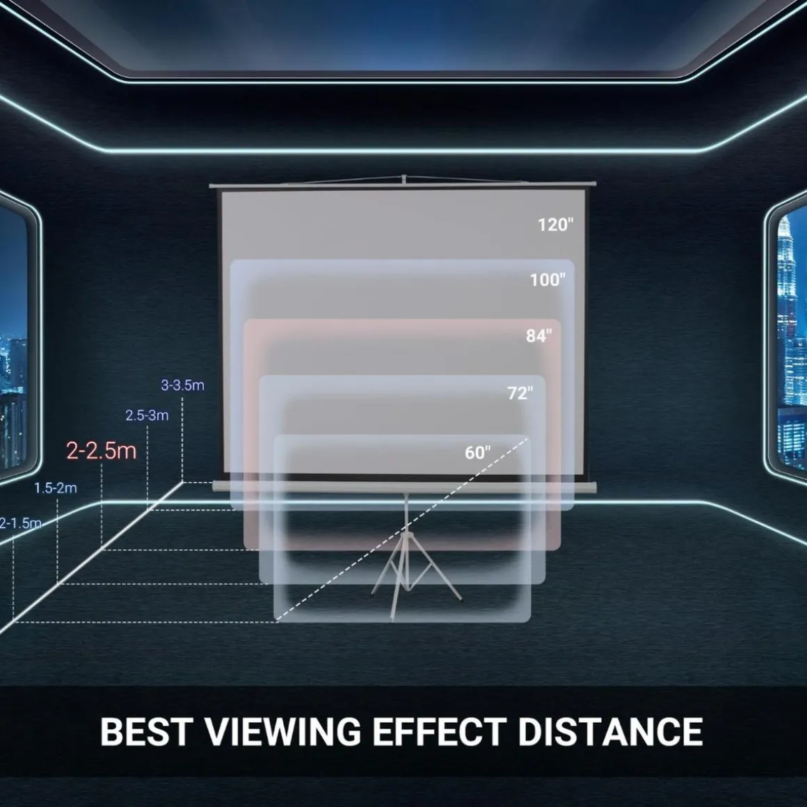 La pantalla de 84 pulgadas se puede usar para múltiples propósitos, desde noches de cine en el patio hasta una presentación en la oficina. Y lo mejor de todo, cuando no está en uso, se puede plegar y guardar fácilmente.