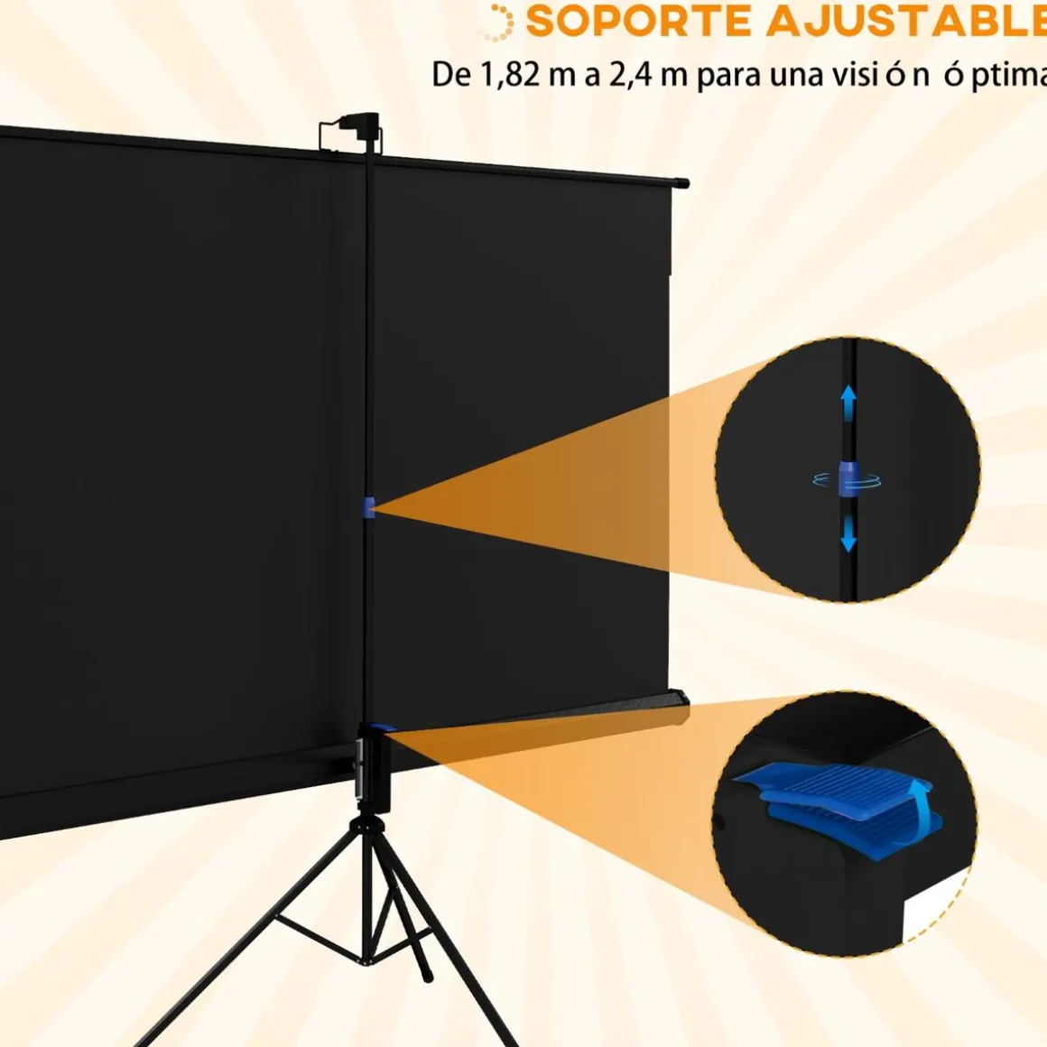 Con esta pantalla de proyección con soporte de HOMCOM, puedes transformar tu sala de estar en tu propio cine personal. Esta pantalla de proyección portátil está hecha de un material de alta calidad que no se arruga fácilmente, permitiéndote disfrutar de largas sesiones de visualización.
