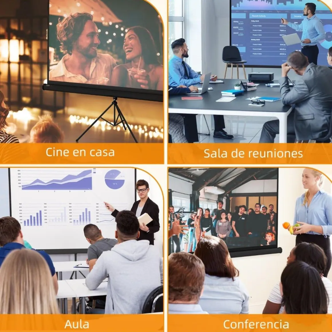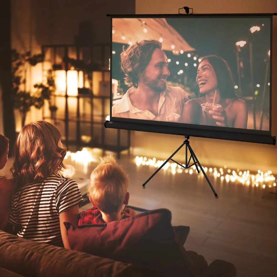 Esta pantalla de 84 pulgadas puede ser utilizada para diversos propósitos, desde noches de cine en el patio hasta presentaciones en la oficina.
