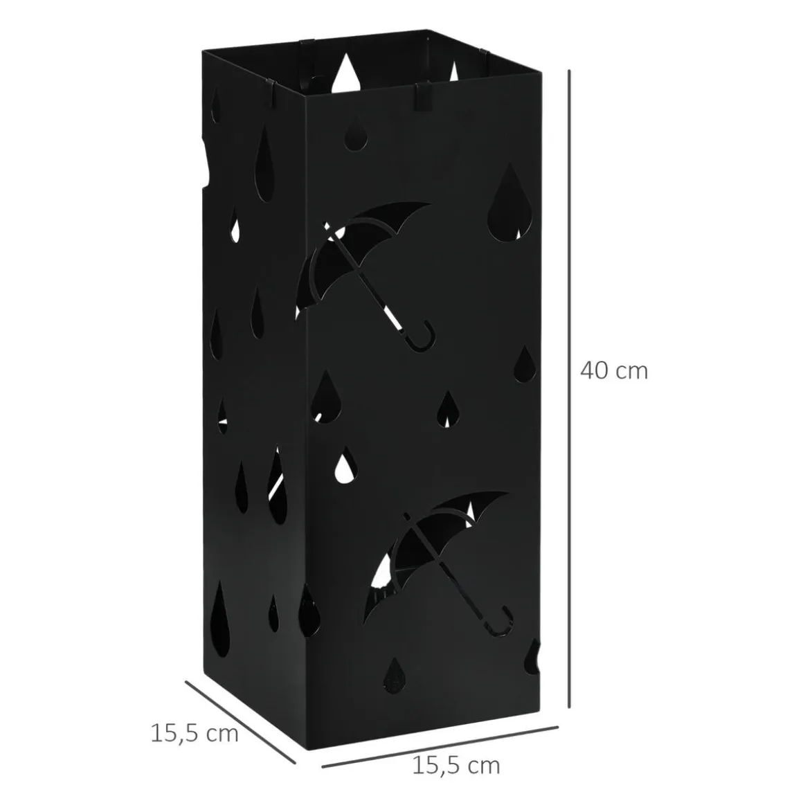 Homcom – Paragüero Negro, puedes disfrutar de la lluvia sin preocuparte por el agua que gotea en el interior. Su bandeja de goteo protege tus suelos, manteniendo tu espacio seco y ordenado.