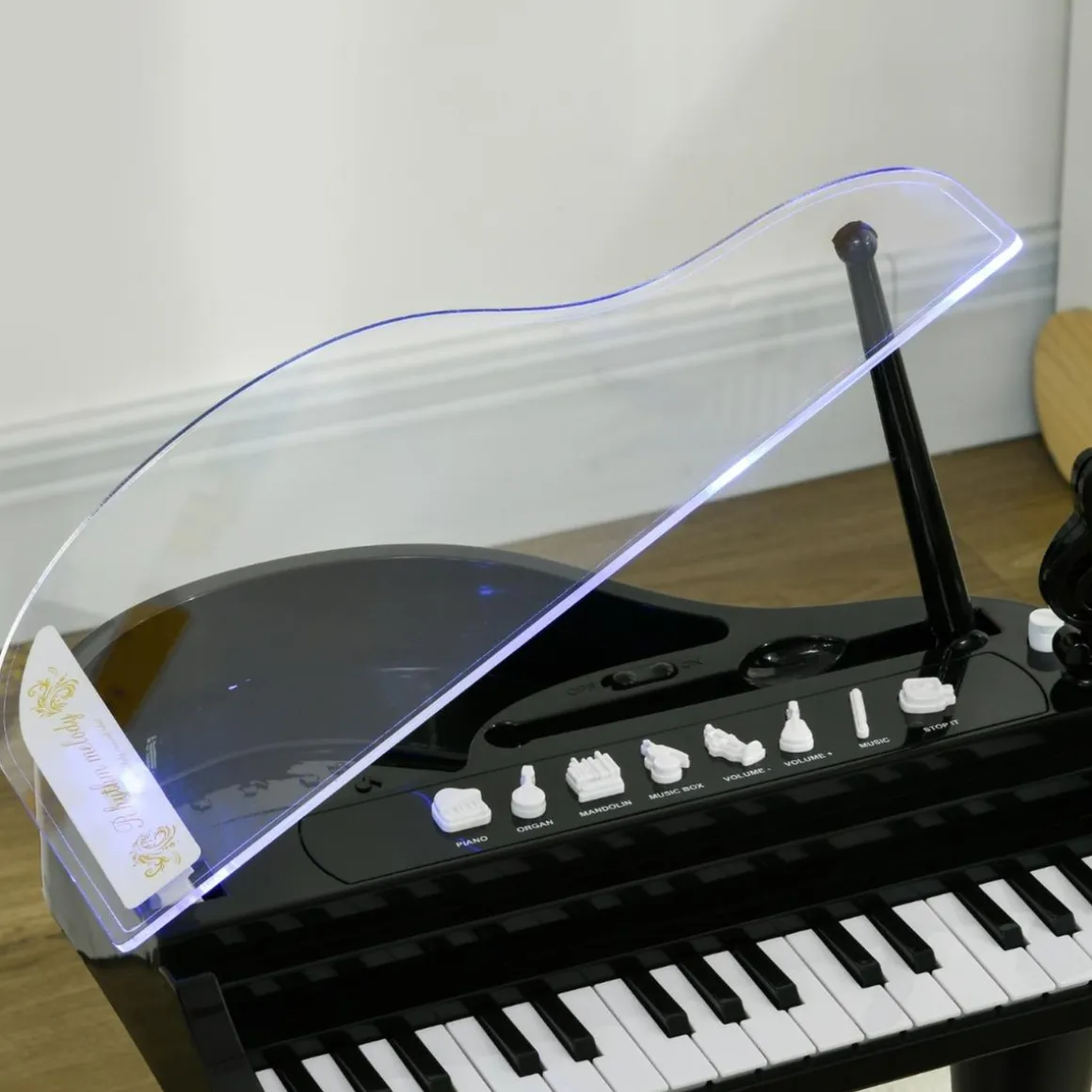 - Este piano de cola para niños viene con un taburete a juego para ofrecer un asiento cómodo a los niños.